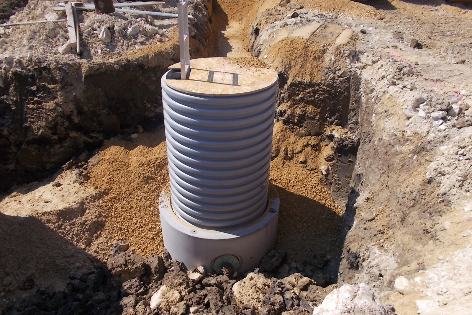 Neben dem 1000er Schacht kamen vor Ort außerdem das HS®-Kanalrohrsystem sowie CONNEX-Kanalrohre von Funke zum Einsatz – insgesamt wurden 380 m HS®-Kanalrohre DN/OD 250 sowie 150 m CONNEX-Kanalrohre DN/OD 315 und 400 m DN/OD 400 verlegt; Übergänge auf Rohre aus anderen Werkstoffen wurden mit der VPC®-Rohrkupplung von Funke geschaffen. Für den Auftraggeber war der Entschluss, auch die Rohre und die Verbindungstechnik von Funke zu beziehen, insofern eine naheliegende Wahl, als man in Elchingen in der Vergangenheit gute Erfahrungen mit den Produkten aus Hamm gemacht hatte.