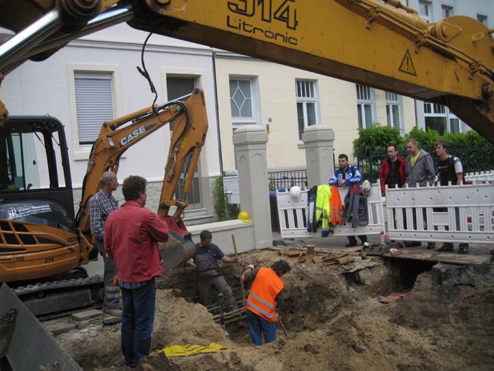 Studierende der Fachhochschule lernen Kanalbaupraxis beim Tiefbauamt: Während des Ausschachtens bricht plötzlich Grundwasser in die Baugrube ein, der Boden ist wider Erwarten kontaminiert - solche Überraschungen müssen die städtischen Tiefbauingenieure immer wieder bewältigen. Von der Erfahrung der Tiefbauer durften jüngst die Studierenden von Prof. Manfred Lohse von der Fachhochschule profitieren. Sie besuchten die Kanalbaustelle in der Ostmarkstraße und ließen sich von Bauleiter Dirk Havermeier vom Tiefbauamt die Arbeiten erklären.