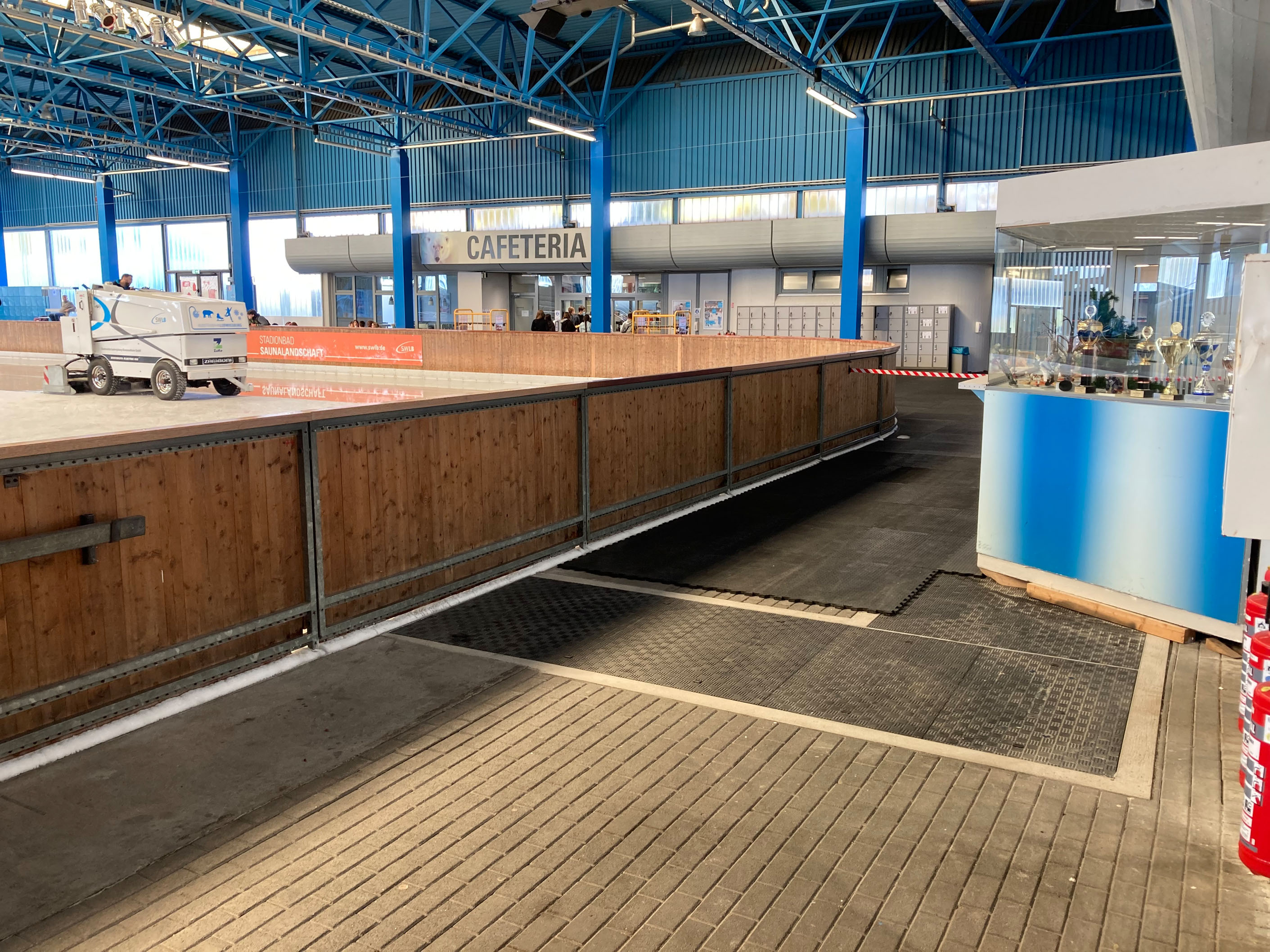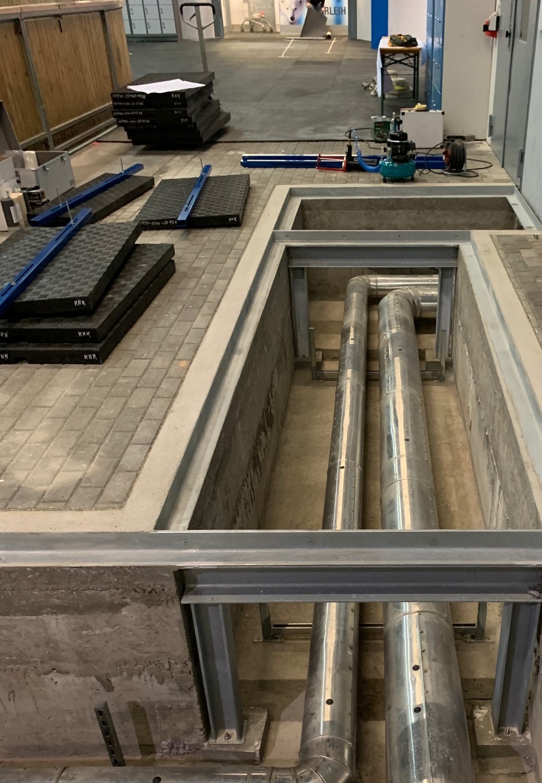 Für den Betrieb der Eisbahn sind zahlreiche Rohre und Leitungen nötig, die unter dem 1977 errichteten Gebäude zwischen der Anschlussstelle und der Eisfläche, partiell auch unter dem dazwischen liegenden Besucher-Gehweg, verlaufen. Bislang bedeckte eine schwere Betonplatte inklusive Pflasterung die Zugangsöffnung zu dieser unterirdischen Infrastruktur. Die massive Vorrichtung war jedoch besonders unhandlich: So musste bei Wartungsarbeiten und Kontrollen das Pflaster stets aufgenommen und die Betonplatte ausgehoben werden. Um dies zu vereinfachen, war eine deutlich leichtere Abdeckung gefragt, die mit maximal zwei Personen geöffnet werden kann.