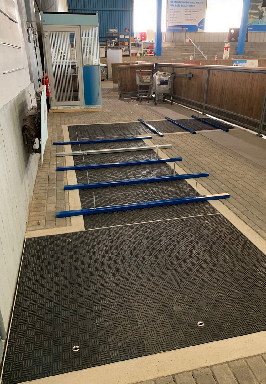 Zudem sollte sie mit einem Gewicht von bis zu 12 Tonnen sicher befahrbar sein. Grund: Der betroffene Bereich muss auch von der hauseigenen Eisbearbeitungsmaschine befahrbar sein. Das Elektrofahrzeug erreicht bereits unbeladen ein hohes Eigengewicht. „Sollte das Fahrzeug einmal defekt sein, ist es im schlimmsten Fall mit Schnee und Eis befüllt und damit deutlich schwerer – und auch dann führt der Weg über die Fläche über den Anschlussleitungen, die zur Piste führen. Bei der Auswahl der Abdeckung mussten wir diesen Aspekt also berücksichtigen“, erklärt Andreas Grimm, verantwortlicher Projektleiter für diese Baumaßnahme.