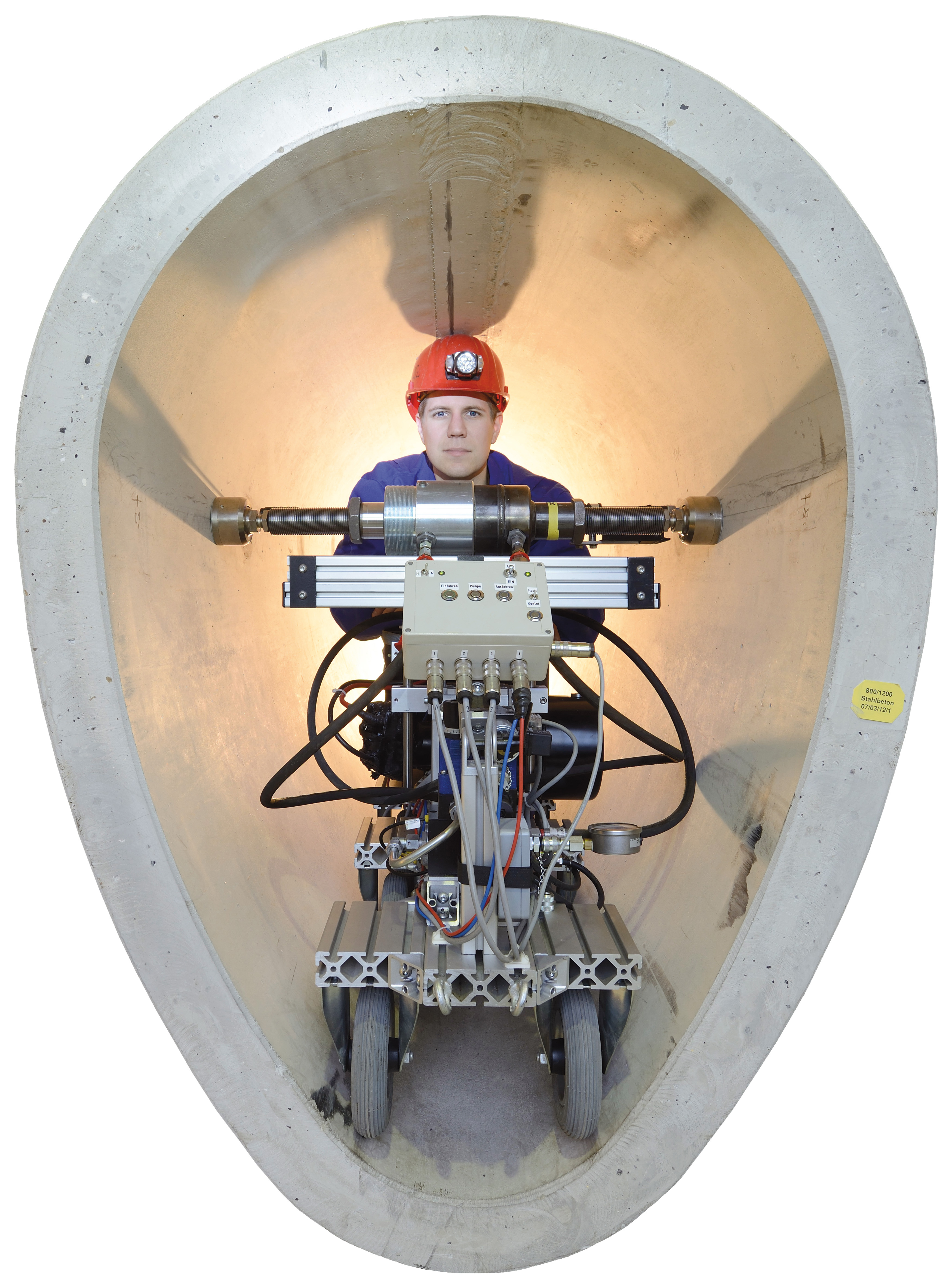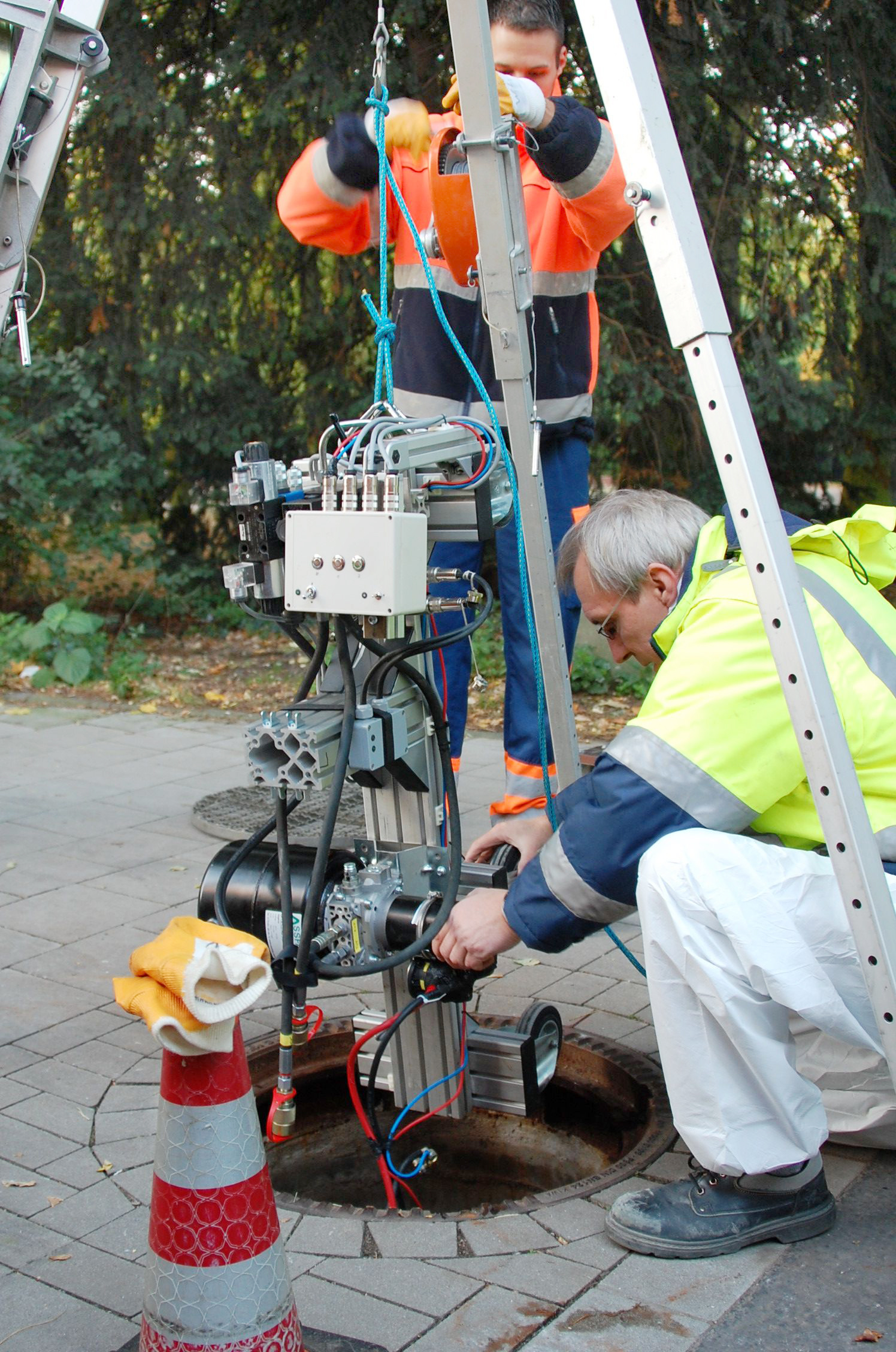Das IKT bietet Abwassernetzbetreibern das MAC inklusive Bedienpersonal zum Einsatz in Mauerwerks- und Betonkanälen von DN 1000 bis DN 3000 an.