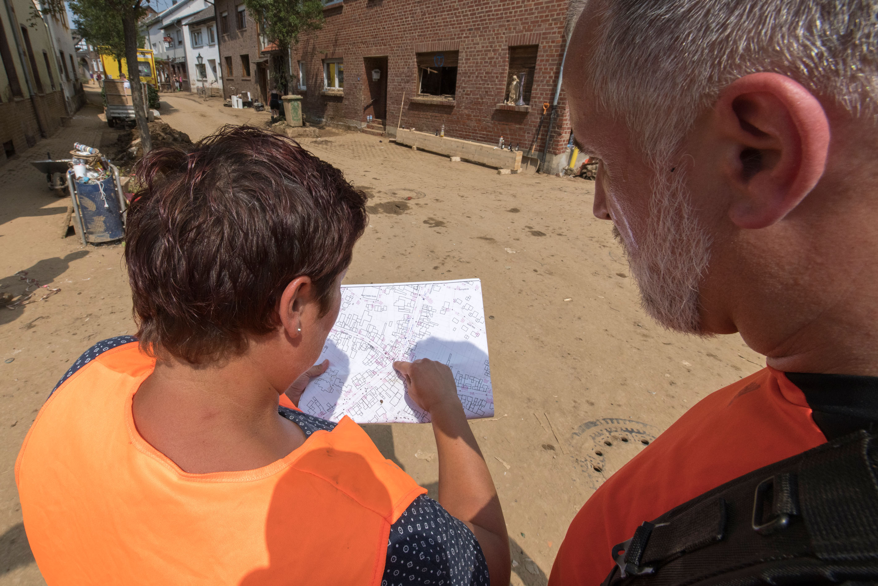 Die „Kanal-Hilfe“ des KomNetABWASSER für die betroffenen Gemeinden in Rheinland-Pfalz und Nordrhein-Westfalen startete unmittelbar in den ersten Tagen nach der Katastrophe. Größtes Problem war zunächst, die richtigen Ansprechpartner für die Kanalinfrastruktur überhaupt zu erreichen. Stromversorgung und Mobilnetze waren ausgefallen.