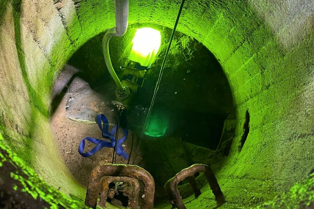 On site, the team were faced with important preparation measures, including having to use a rope to pull the CCTV camera through the voids because of the deteriorated state of the host pipe, and the approach to the pre-cleaning needed to be carefully considered to avoid collapse.