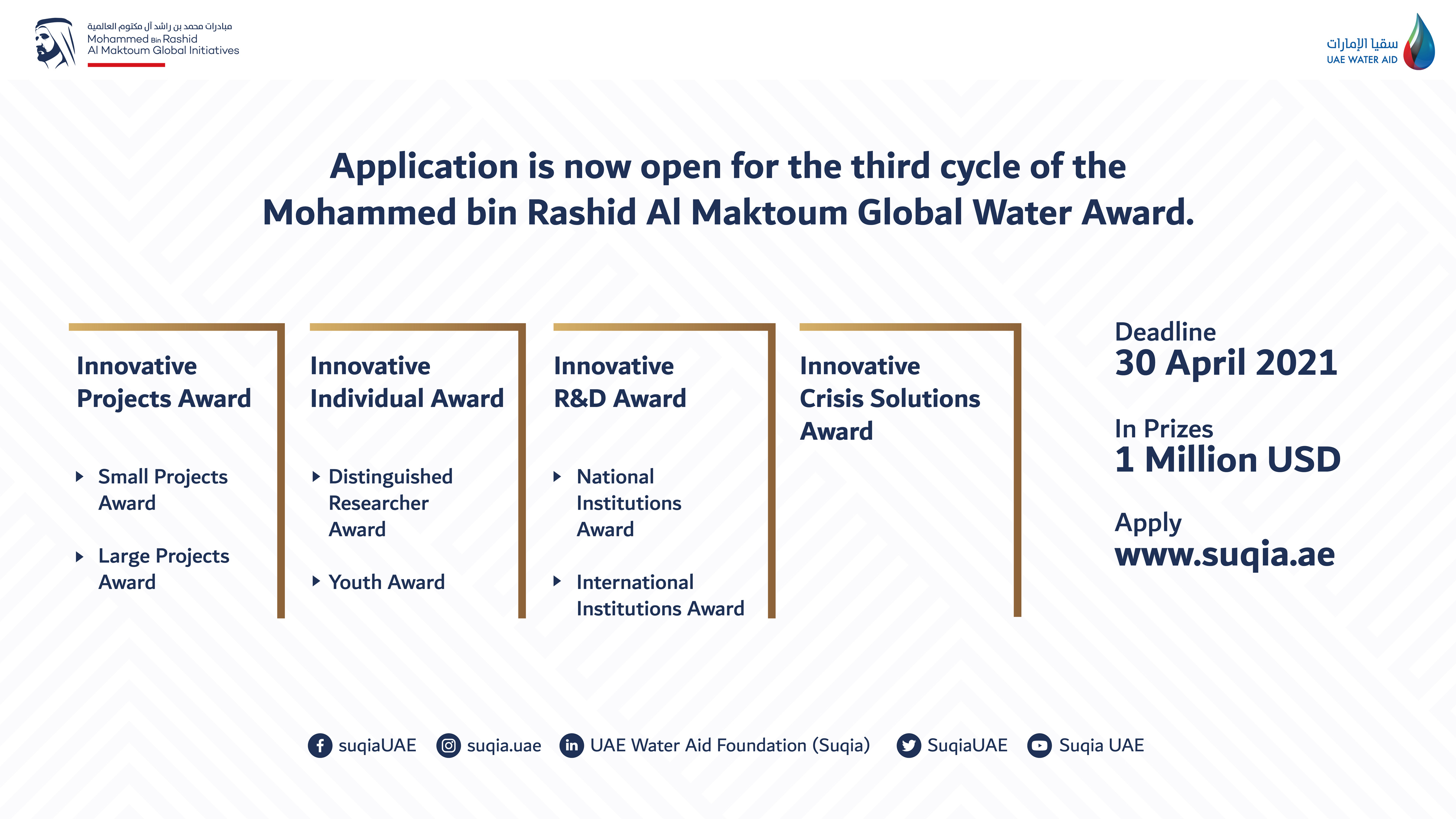 Suqia UAE Opens Registration for 3rd Cycle of the Mohammed bin Rashid Al Maktoum Global Water Award and Adds a New Category