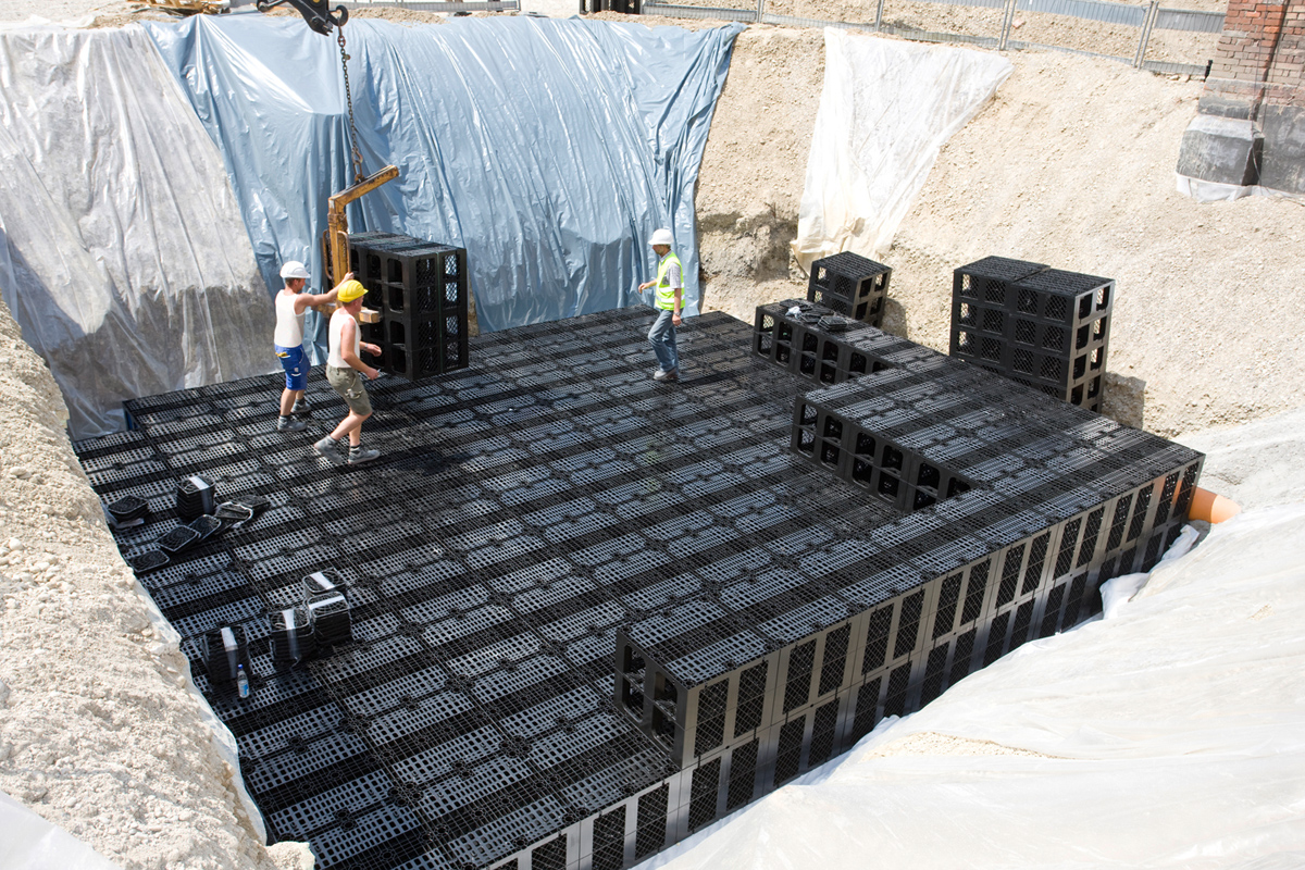 Leider sind Freiflächen immer häufiger versiegelt und stehen somit für die natürliche Versickerung von anfallendem Regenwasser nicht mehr zur Verfügung. Offene Wasserauffangbecken stellen hier zwar eine Alternative dar, haben aber den Nachteil, dass sie bspw. gegen unbeabsichtigtes Hineinfallen gesichert werden müssen und die Oberfläche nicht mehr für Parkplätze oder eine Begrünung nutzbar ist.