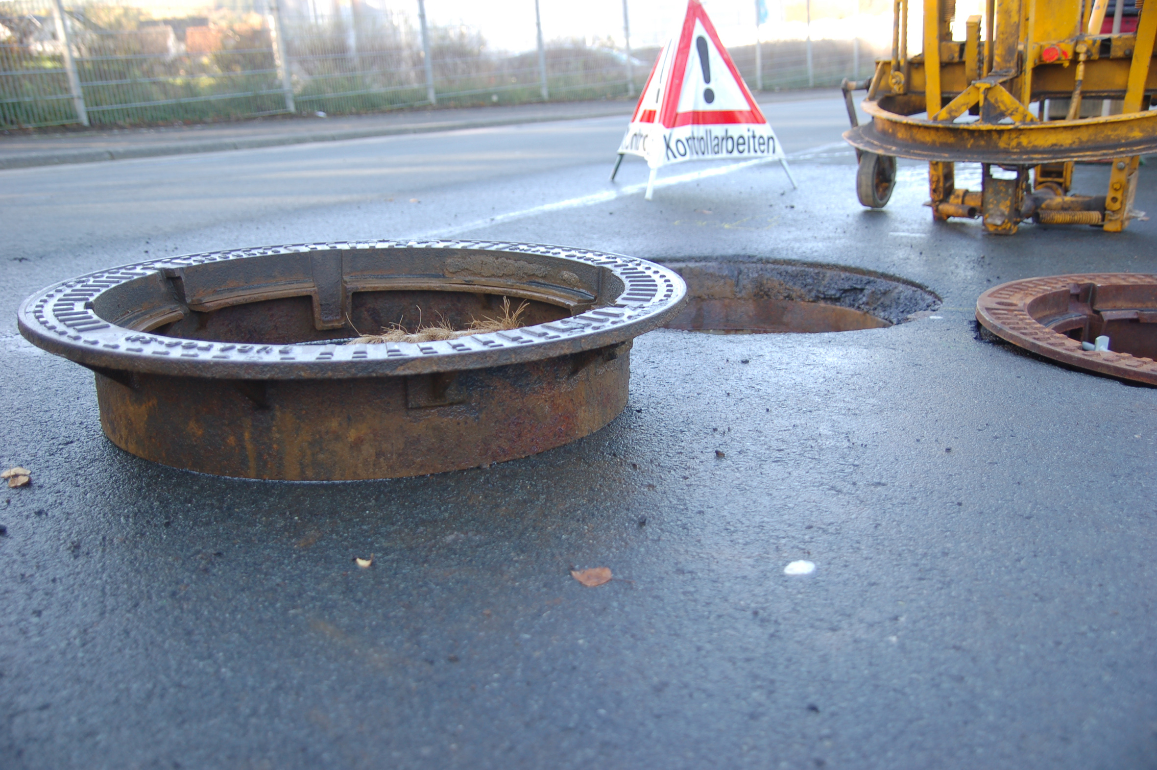 Der starke Verkehr, der täglich über die Carl-Benz-Straße fließt, hat aber auch diesen schwimmenden Schachtabdeckungen einiges abverlangt: Aufgrund eines Einbaufehlers – schlechte Verdichtung im Einbaubereich durch mangelnde Erfahrung in der Einbauweise der neuartigen Schachtabdeckung – haben diese sich im Laufe der Jahre mit dem Asphalt abgesenkt. Mit doppelt negativen Auswirkungen: Durch die Fahrzeuge, die über die abgesenkten Schachtabdeckungen "holpern" entstand eine erhebliche permanente Lärmbelästigung für die Anlieger. Zudem hatte sich durch die Absenkung der Kraftübertrag des Verkehrs auf die Abdeckungen noch verstärkt, die Radlasten "fielen" regelrecht auf die Abdeckungen – die dynamische Belastung war dort punktuell besonders hoch.