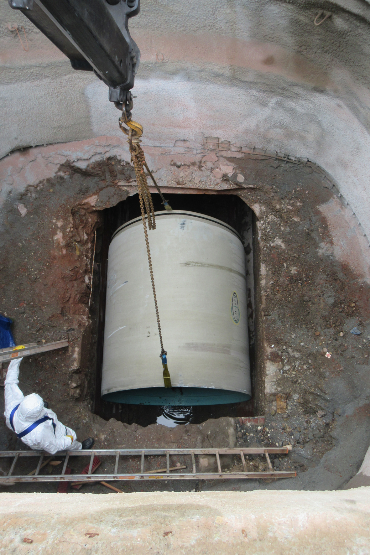 Aufgrund des relativ guten Gesamtzustandes des Bauwerks entschieden sich die Verantwortlichen nach vorangegangener Wirtschaftlichkeitsprüfung und der Prüfung verschiedener technischer Optionen für eine Sanierung der betroffenen Haltungen mit einem „Rohr-in-Rohr-Verfahren“.