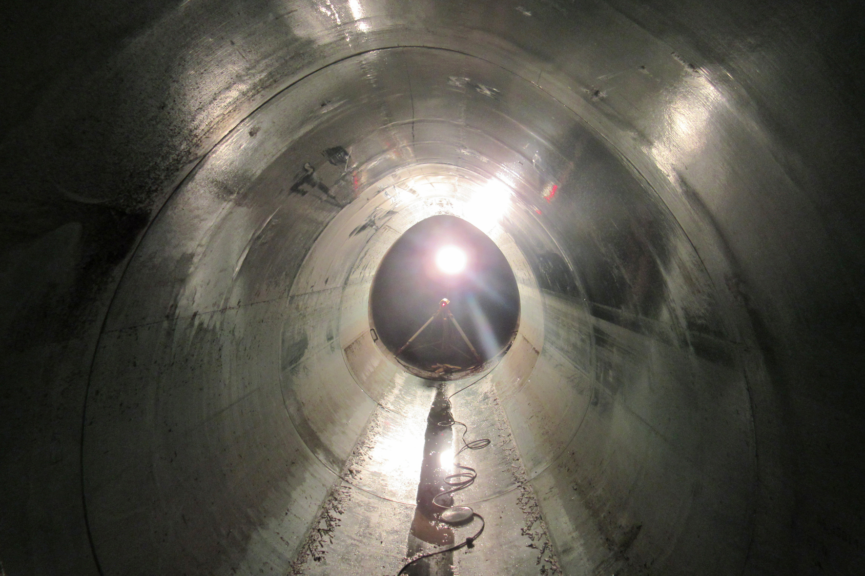 Die Umsetzung stellte die Baubeteiligten allerdings vor ein handfestes Problem: „Die alte Sohlauskleidung war dermaßen fest und verhärtet, dass sie sich praktisch nicht herausstemmen ließ“, erinnert sich Sachgebietsleiter Fromm. An Stellen, an denen sich die Auskleidung besonders hartnäckig zeigte, musste deshalb mit einem Höchstdruckwasserstrahl gearbeitet werden. Im Anschluss an diese Spezialarbeiten, bei der ein Wasserstrahl mit 2500 bar Druck das alte Mauerwerk 7 cm tief herausfräste, wurde die Sohle reprofiliert, um die Befahrbarkeit mit dem Montagewagen sicherzustellen.