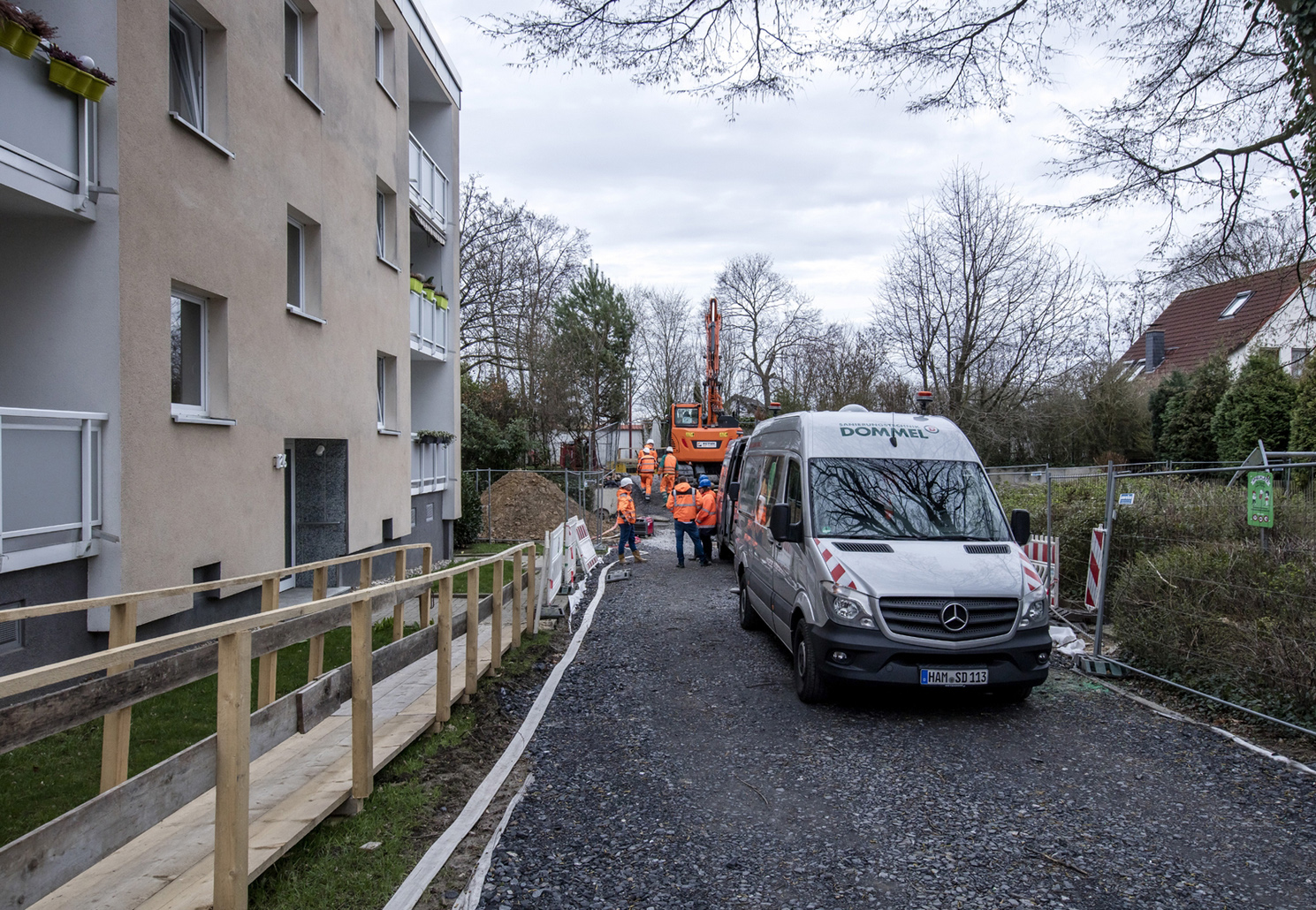 Den Auftrag für die Ausführung der komplexen Tiefbau- und Sanierungsarbeiten erhielt die Sanierungstechnik Dommel GmbH aus Hamm. Für den öffentlichen Auftraggeber war es wichtig, alle Leistungen aus einer Hand zu erhalten. Mit Dommel hat die Stadt Dortmund schließlich ein Unternehmen gefunden, das nicht nur die verschiedenen Sanierungsverfahren beherrscht, sondern darüber hinaus auch die nötigen Tiefbauarbeiten selbst durchführt.