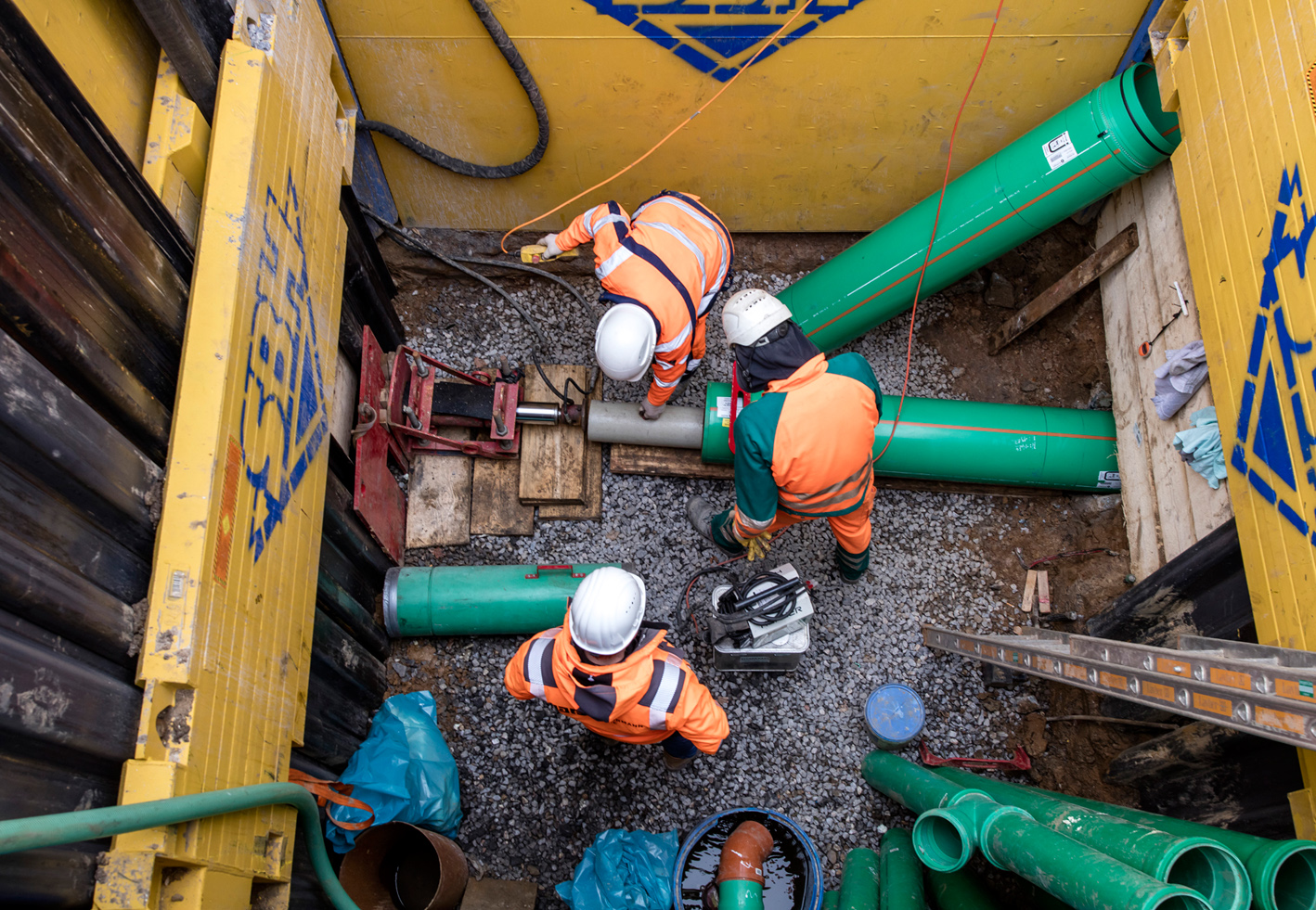 Der auf den Flanken des Altkanals aufliegende neue Strang wurde an den Zielschacht angebunden und gegen Auftrieb gesichert. Abschließend verdämmten die Mitarbeiter von Dommel den verbliebenen Ringraum lagenweise.