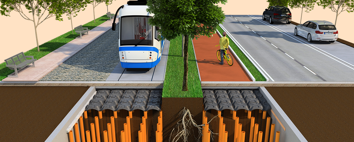 Geoplast hat innovative und erfolgreiche Produkte entwickelt, mit denen effiziente Regenwassernutzungssysteme gebaut werden können, die den natürlichen Wasserkreislauf erhalten und die Schäden der massiven Urbanisierung verhindern. Die Verhinderung von Überschwemmungsschäden für Privathäuser, öffentliche Gebäude und Infrastrukturprojekte ist ein wichtiger Faktor bei der Reduzierung von Ausgaben und der Einsparung von Wasserressourcen.