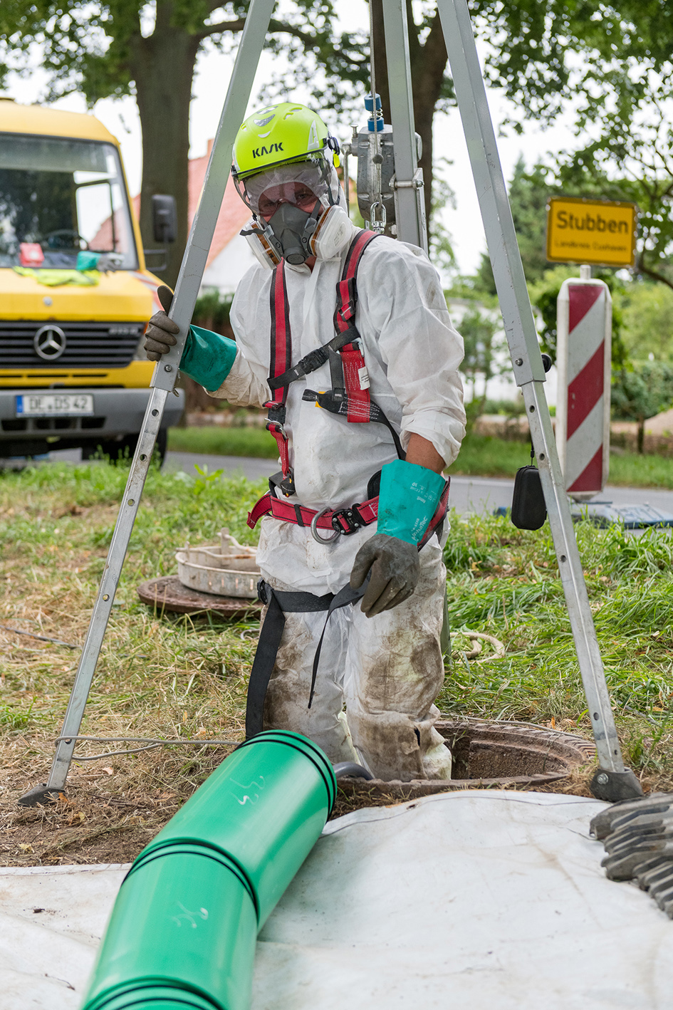 Es sei denn, unvorhergesehene Ereignisse setzen den Zeitplan außer Kraft – so wie zum Jahreswechsel: „Aufgrund des Zusammenbruchs eines maroden und jahrzehntealten Kanalabschnittes in der Bahnhofstraße in Stubben wurden einige Haltungen bereits im Dezember 2017 durch Steinzeugrohre ersetzt, bevor die daran anschließenden Haltungen an der L 134 im Sommer 2018 planmäßig mittels Berstlining erneuert werden konnten“, erinnert sich Niemann.