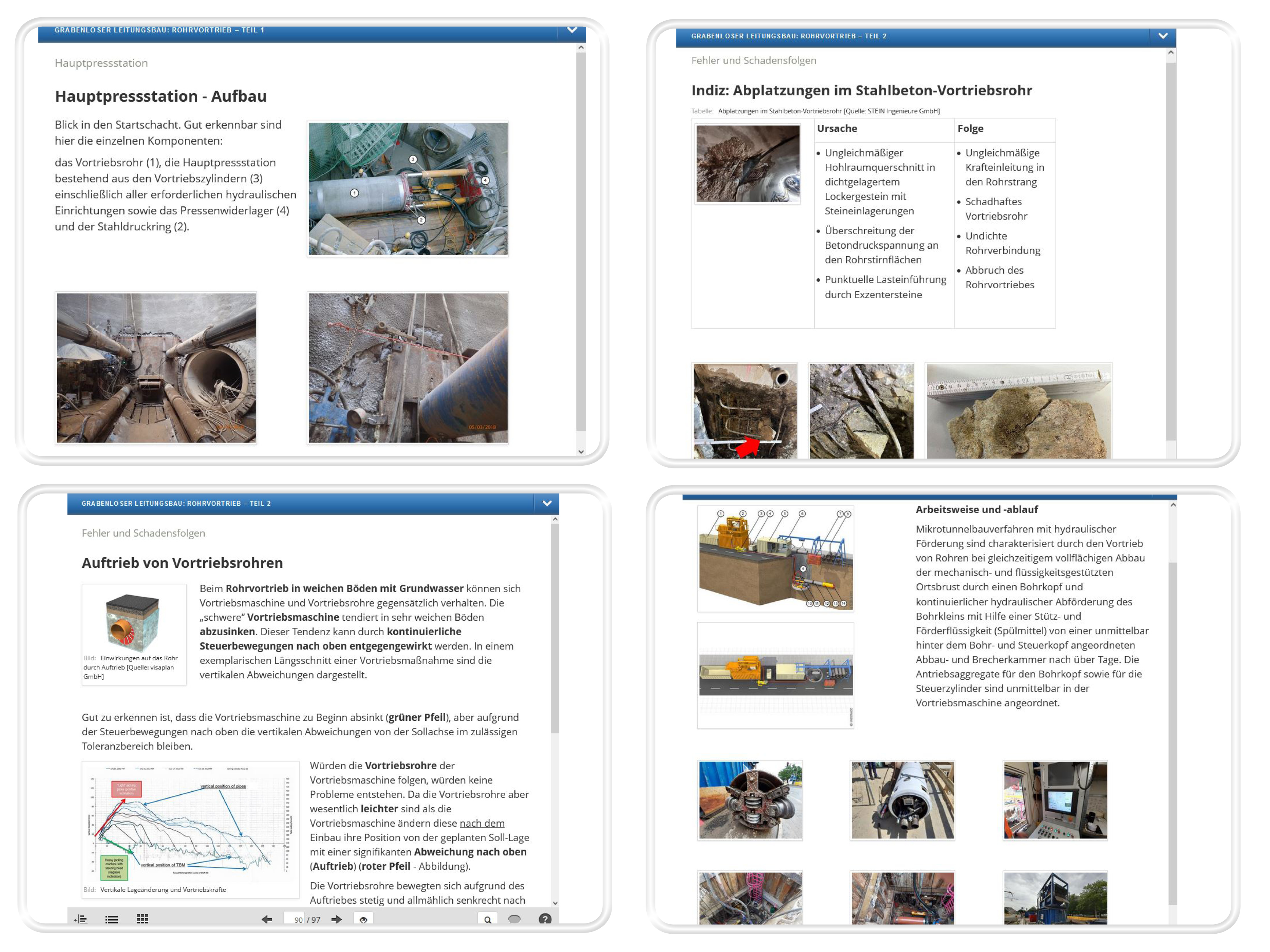 Zu den neuen Inhalten gehören unter anderem technische Ausführungen und visuelles Material zu Aufbau, Abbauwerkzeugen, Fehlern und Schäden, Spezifika der Auftriebskraft und Aspekten des Mikrotunnelbaus mit hydraulischer Förderung.