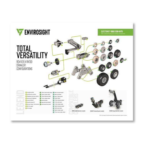 Envirosight makes it easy to change wheels at the push of a button, add accessories like side scan or auxiliary lamps, or raise the system’s profile with a lift.