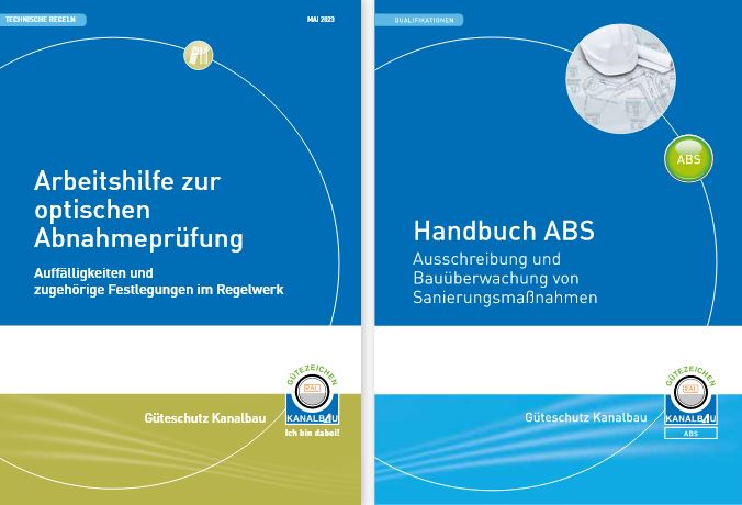 Weitere Unterstützung bietet die Gütegemeinschaft Kanalbau mit speziellen Broschüren, die neben den „Textbausteinen zur Vergabe“ unter dem Menüpunkt „Infoschriften“ zusammen- gefasst sind. Hierzu zählen „Arbeitshilfen“, das „Loseblattwerk Technisches Regelwerk“ oder „Leitfaden zur Eigenüberwachung“. Die „Arbeitshilfe zur optischen Abnahmeprüfung“ bietet Fachleuten einen Leitfaden zu „Auffälligkeiten und zugehörige Festlegungen im Regelwerk“ an, in dem den Feststellungen der optischen Inspektion die entsprechenden Hinweise und Festlegungen im Technischen Regelwerk und anderen Quellen zugeordnet werden. Die Hand- bücher „Ausschreibung und Bauüberwachung von Sanierungsmaßnahmen“ (ABS) und „Aus- schreibung und Bauüberwachung von Kanalbaumaßnahmen in offener Bauweise“ (ABAK) informieren, wie man mit dem notwendigen Fachwissen an eine Sanierungsmaßnahme oder eine Neuverlegung herangeht. Schwerpunkte liegen unter anderem auf Normen und Regel- werken sowie wichtigen bautechnischen Parametern.