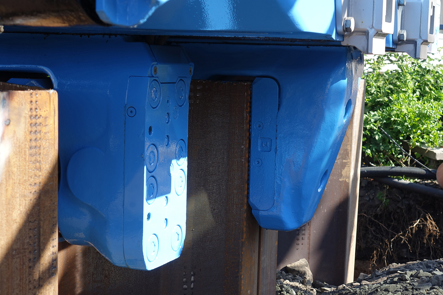 „Um die Reibungskräfte beim Einpressen der Spundbohlen am Schloss zu reduzieren, wurden die Schlösser mit Bitumen versiegelt“, führt Aydin aus. Darüber hinaus wurden die Schlösser für eine größere Festigkeit im oberirdischen Bereich nach dem Einpressen abschließend noch verschweißt. Mit jeder Bohle, die in den Boden gepresst wird, wandert die Presse dann Schritt für Schritt weiter. Klemmbacken halten sich hierfür an den eingepressten Spundbohlen fest. So konnten die 34 je 9,5 Meter langen Spundbohlen erfolgreich in kurzer Zeit in den Baugrund eingebracht werden.
