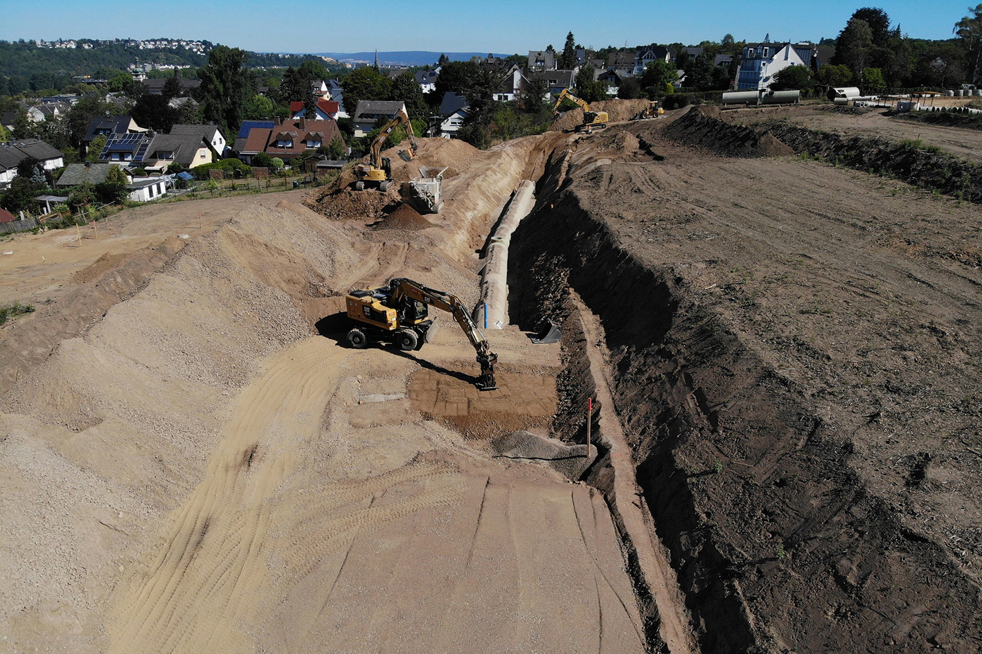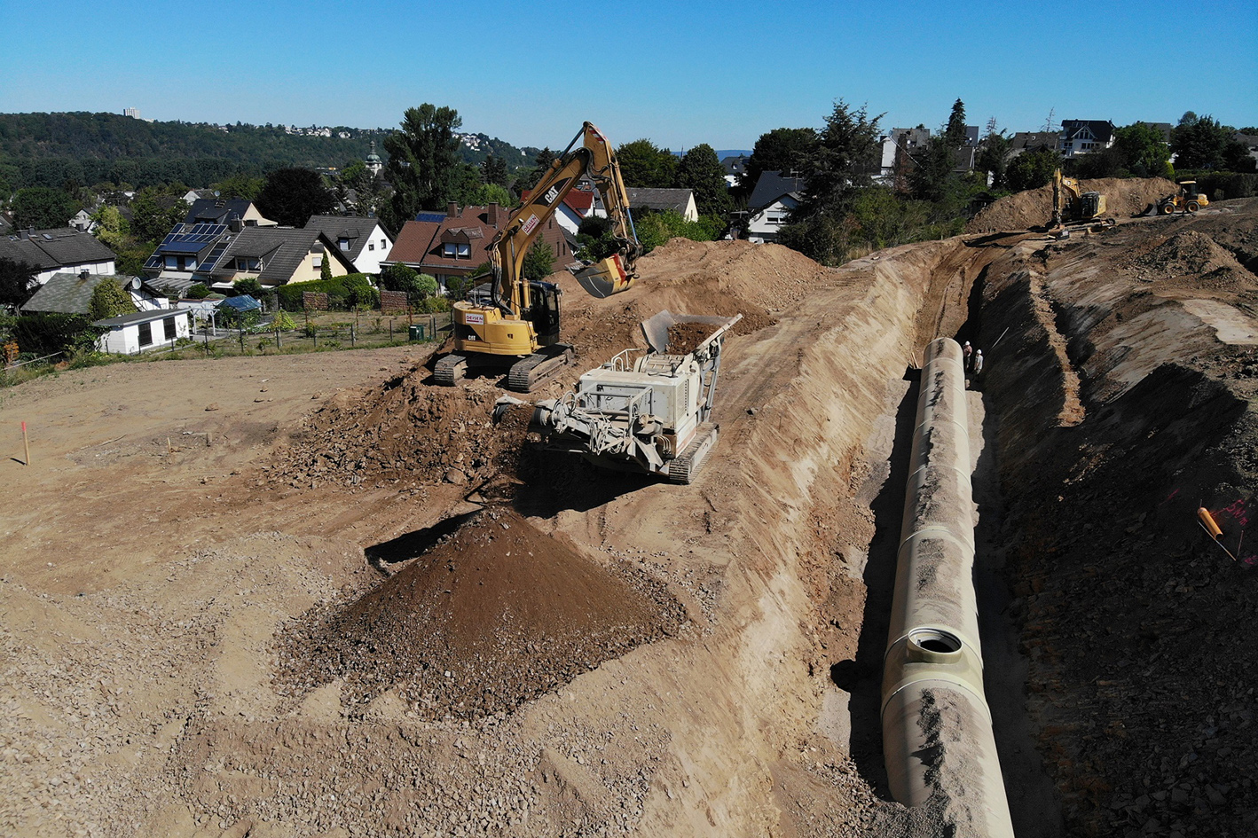 Um der hohen Nachfrage nach Wohnbaugrundstücken entgegenzukommen, ließ die Karst Ingenieure GmbH kürzlich eine knapp 5 ha große innerörtliche Freifläche westlich der B 42 und der Kölner Straße erschließen – in Abstimmung mit der Stadt Lahnstein, an die die Straßen und Kanäle nach der Fertigstellung übertragen werden.