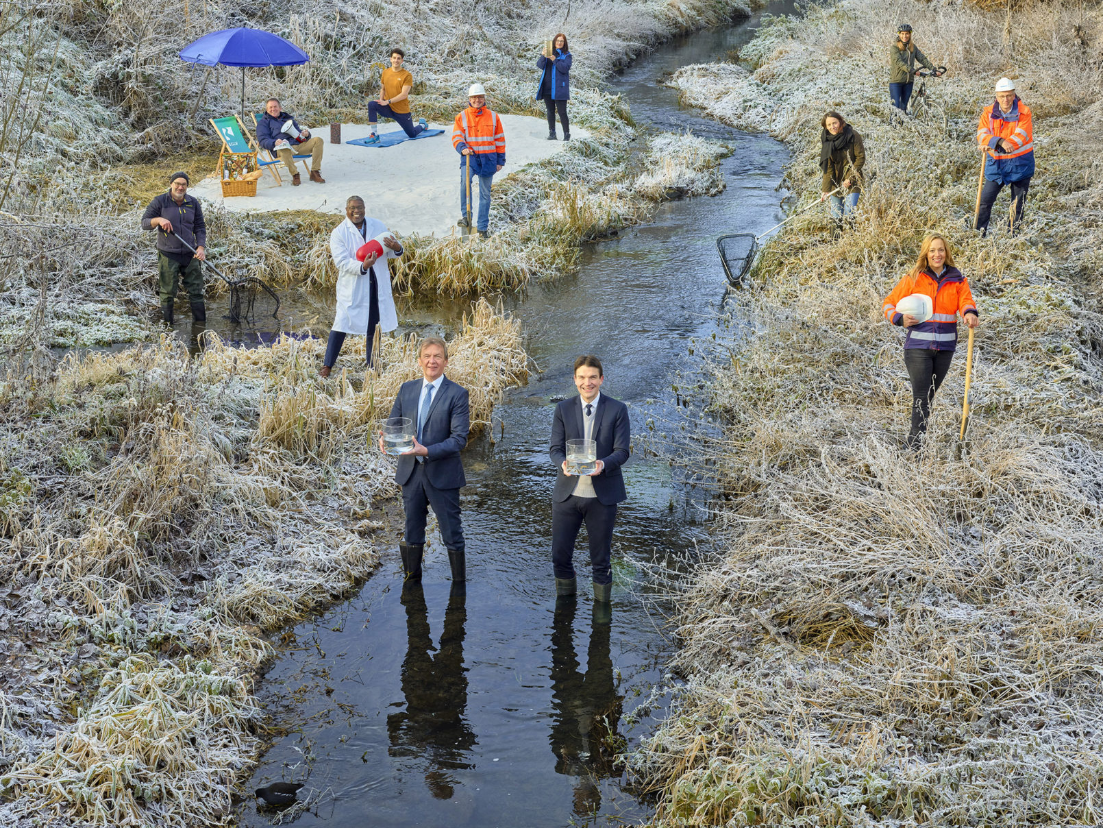 Parallel zum Kanalbau sind zudem bereits rund 150 Kilometer an Gewässern renaturiert worden und bieten heute ein neues Zuhause für Eisvögel, Libellen, Stelzen und Groppen. Die Artenvielfalt an der Emscher hat sich in den vergangenen drei Jahrzehnten durch den Emscher-Umbau verdreifacht!