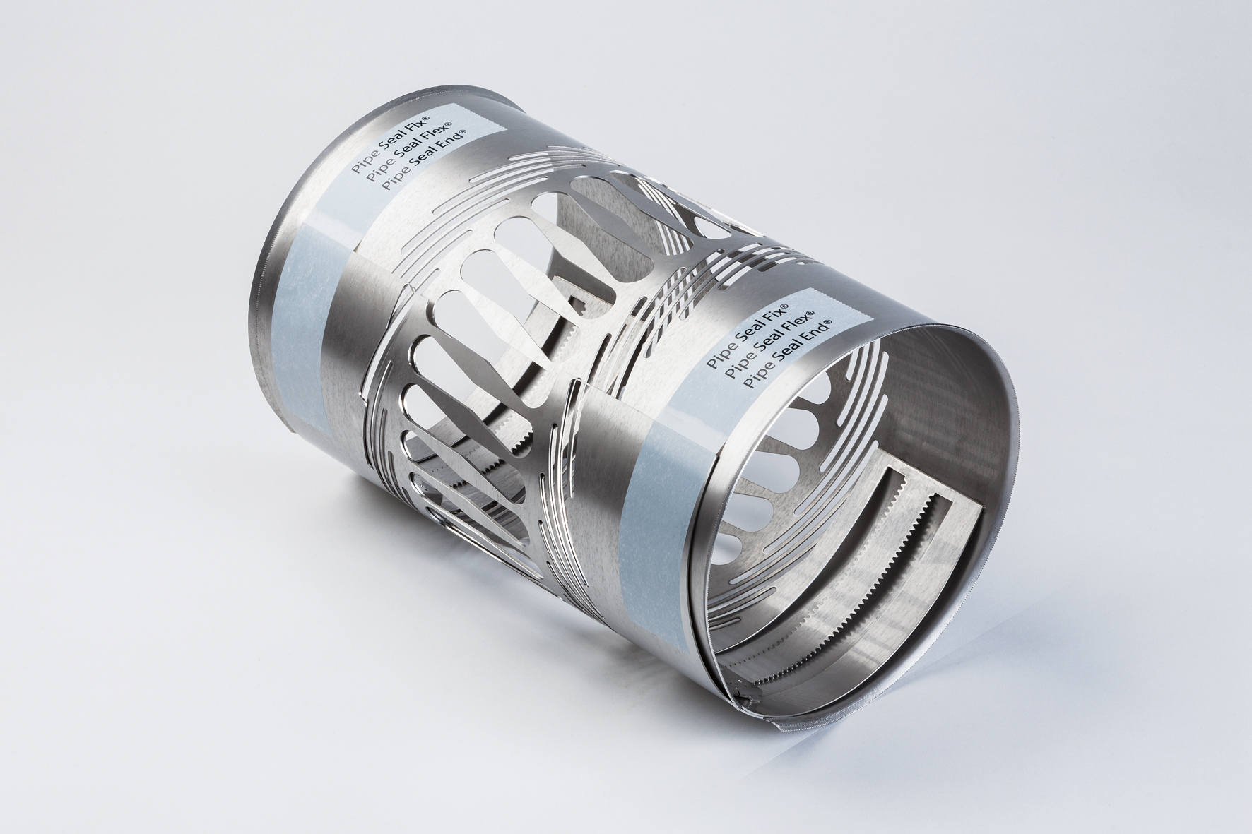 Die Sanierungsmanschetten Pipe-Seal-Fix (DN 150-800) und Pipe-Seal-Flex (DN 200-400) eignen sich zuverlässig für die Einzel- und Serienversetzung, wobei letztere auch bei Muffenversätzen, Achsabwinklungen und Dimensionssprüngen einsetzbar ist. Durch die Anordnung von Lamellenöffnungen in der Edelstahlhülse in Verbindung mit dem EPDM-Dichtelement legt sich die Pipe-Seal-Flex form- und kraftschlüssig an die schadhafte Rohrwandung an.