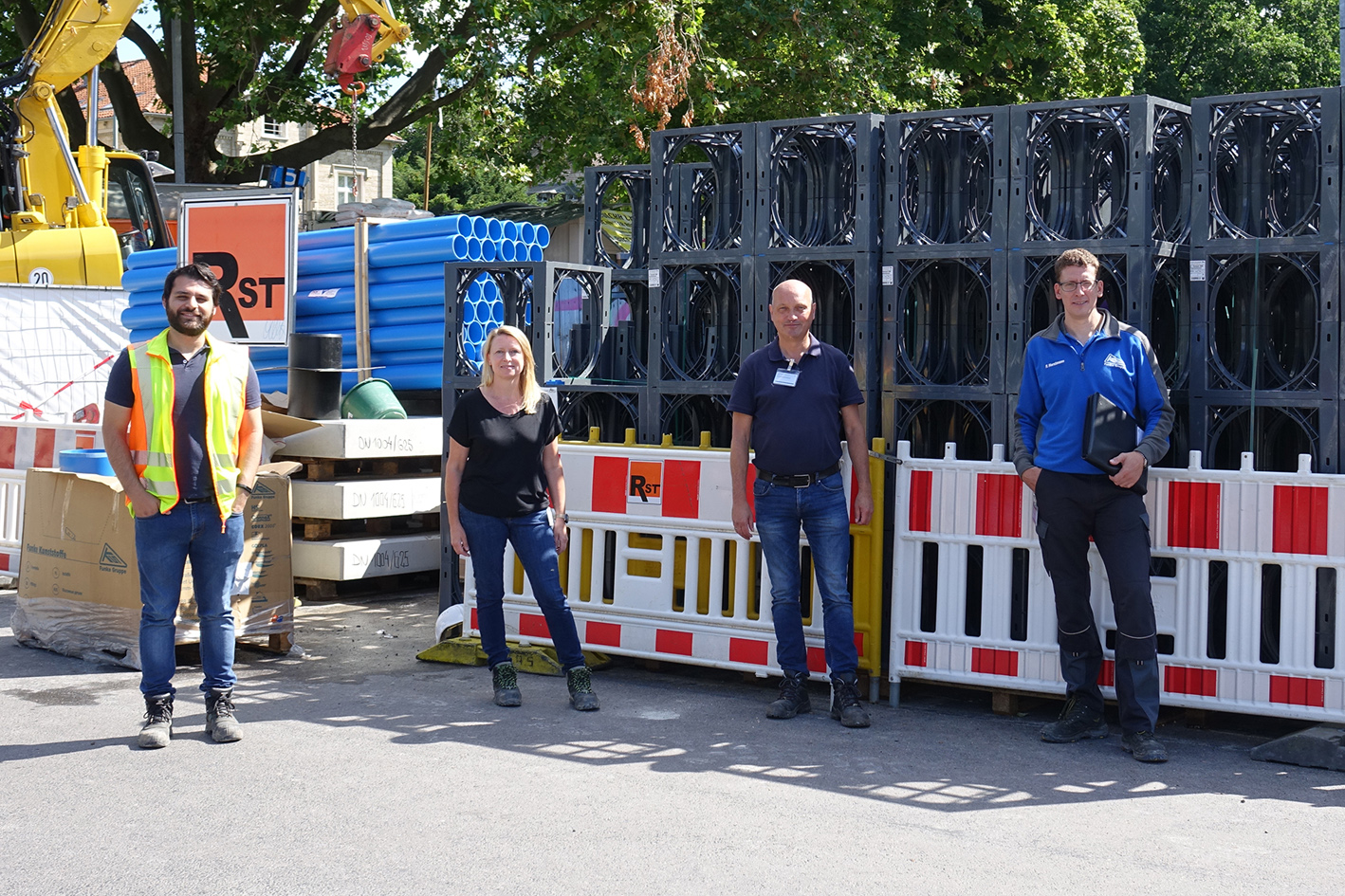 Anke Thiele von RST zeigte sich auf der Baustelle begeistert von dem System: „Man merkt, dass es für die Praxis gemacht ist. Die Handhabung der Elemente ist einfach. Genau wie das HS®-Kanalrohrsystem, welches in unterschiedlichen Farben für Schmutz- und Regenwasser erhältlich ist, ist auch die Verbindung der Raintanks bei mehrlagigem Einbau ein von Funke gut durchdachtes System.“