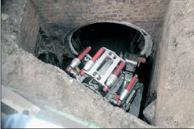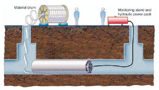 - The machine can also travel through several intermediate manholes, so that entire pipe runs can be renovated in a single operation (Figure 3).