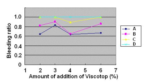 - In the case of the 3% addition of Viscotop, there is little bleeding in each combination with regards to the amount of addition of flyash.