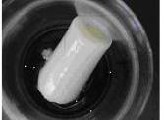 After Agents A and B of Lubricant α at a 1/2,000 scale per combination of 400 liters for each agent were mixed, it was poured into a mould 5cm in diameter and 10.5cm in height. It was kept in the mould 10 minutes after mixing and was then removed. It was set in the center position of a beaker into which 900 ml of distilled water was poured. The distilled water in the beaker was taken out by siphon after 24 hours, and the distilled water was poured in after the sample was photographed. This procedure was repeated every day for two weeks.