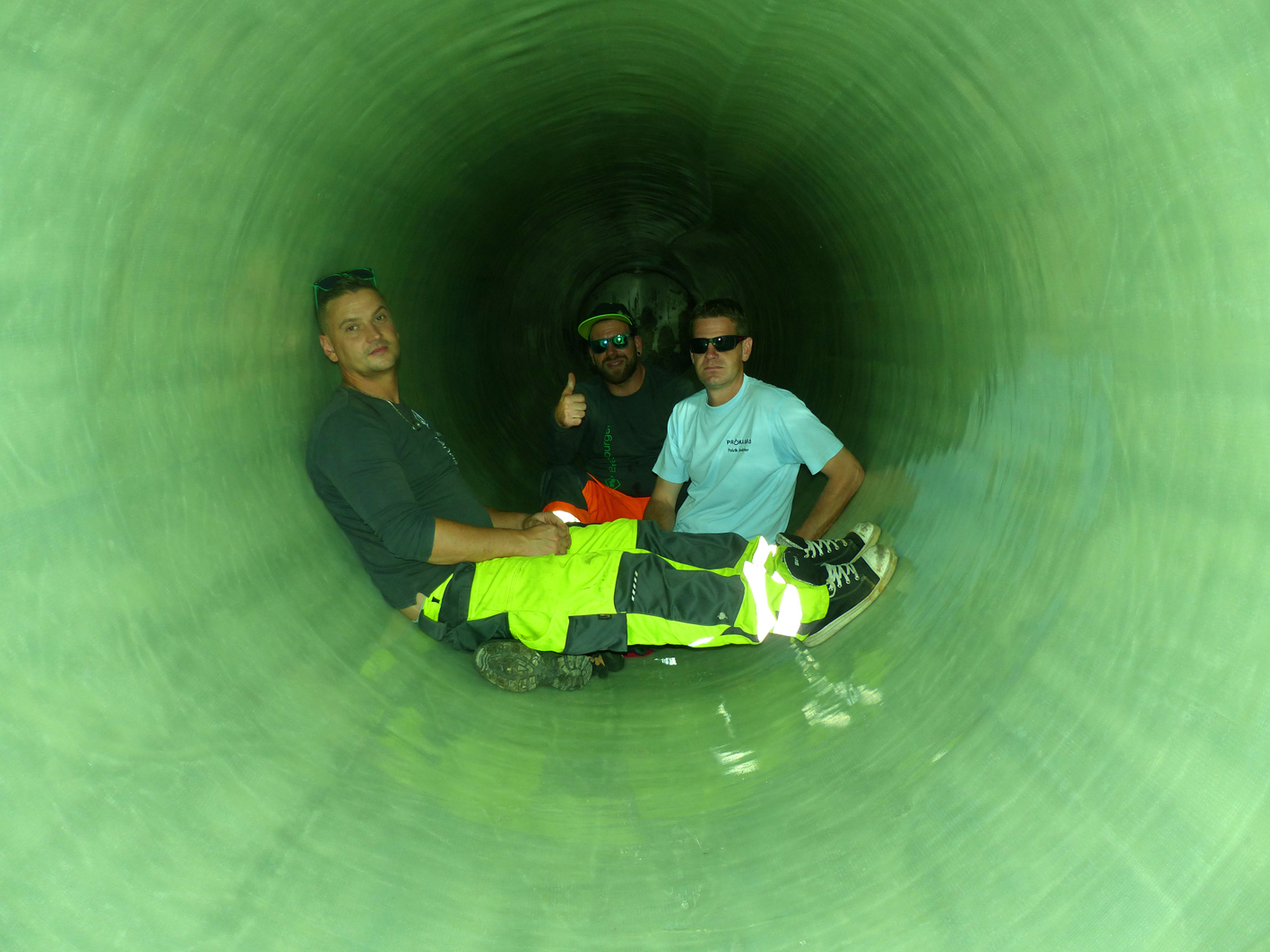 Then the shock at ten o'clock: The sensor of the conveyor belt failed. With the help of the staff from Landau, Marc Albrecht was able to solve the problem quite quickly, allowing the folded liner to be drawn into the sewer without any further difficulties. Luckily it only started raining once the liner was already in the sewer.