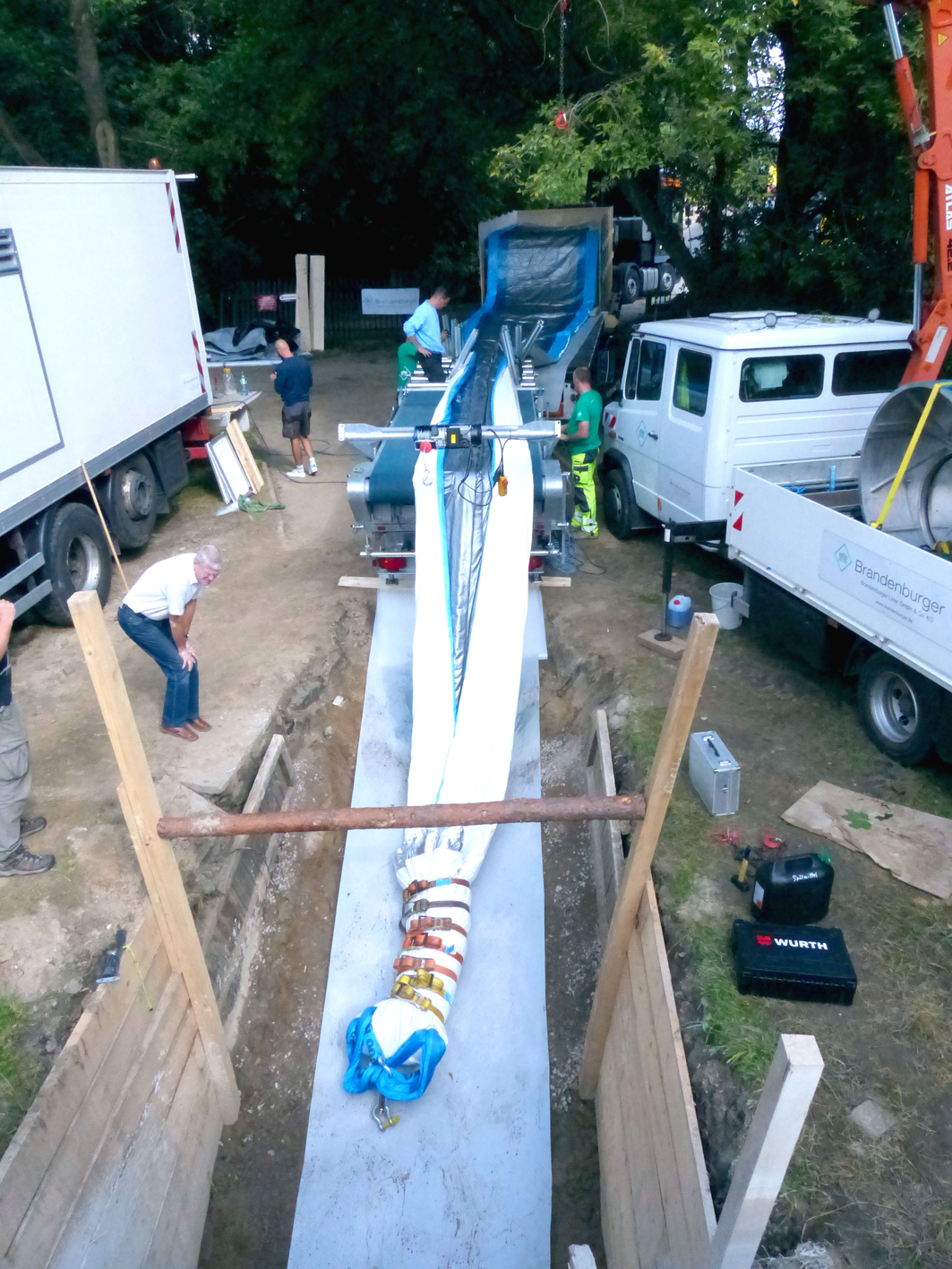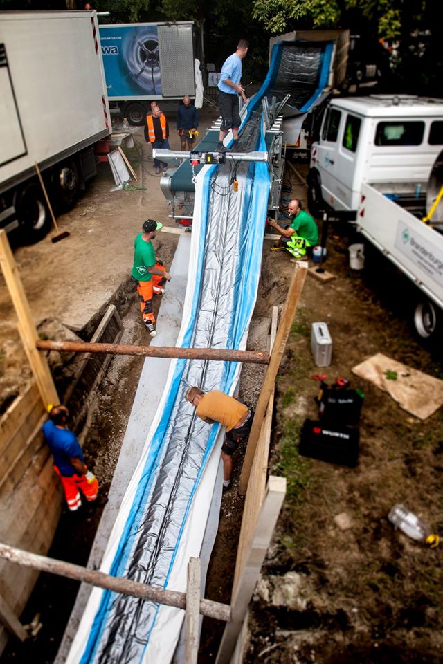 One of them needed rehabilitation. The challenge: installing the 26-tonne-heavy liner across the entire width of the river; in other words over a length of 280 metres with a diameter of 1.5 metres. Brandenburger Liner GmbH & Co. KG has risen to this great challenge and produced the liner on the new, larger production line.