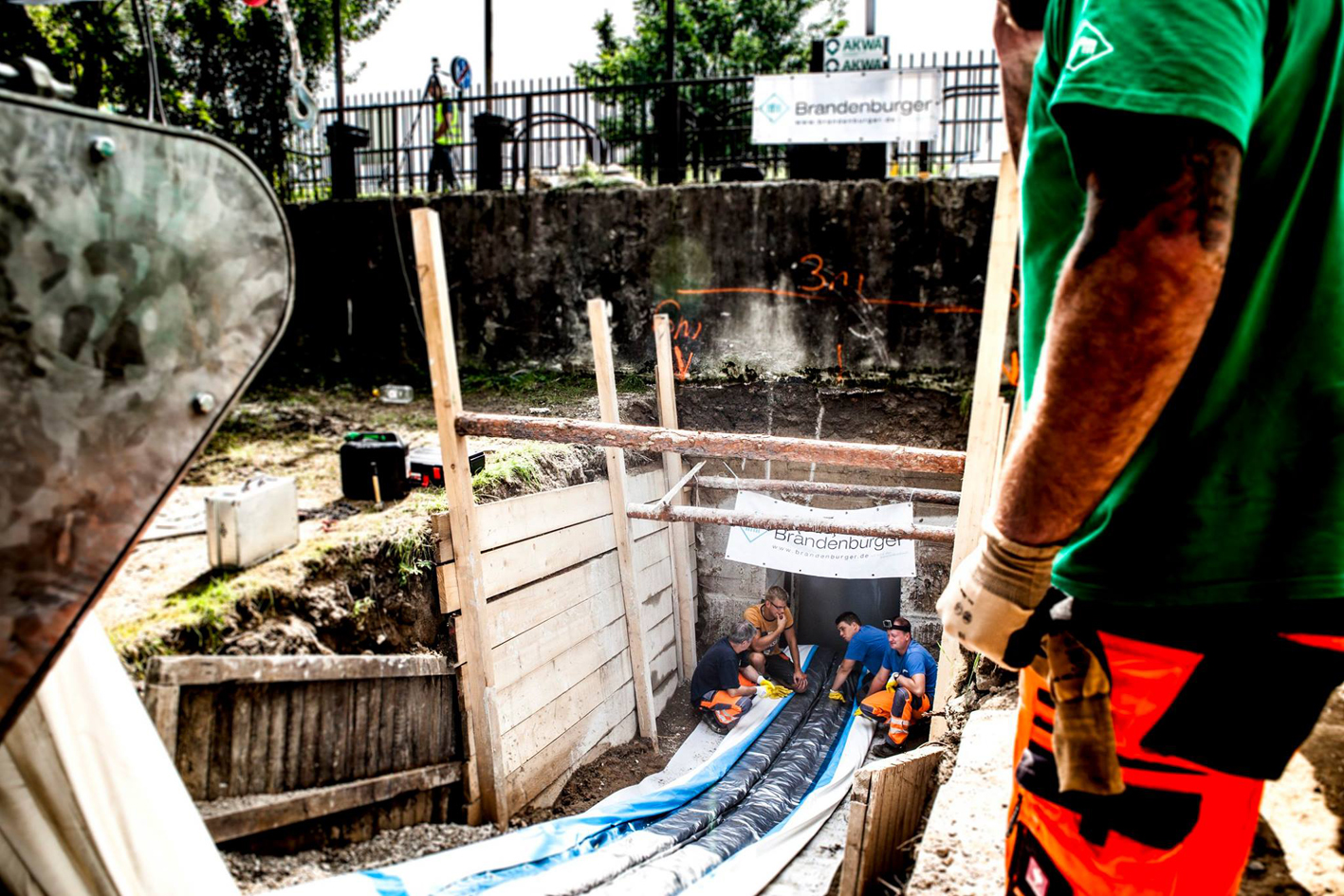 Inspection of the liner during the next morning confirmed: The construction project, worth 400,000 euro, could be completed successfully – thanks again to the good cooperation of Brandenburger Liner GmbH & Co. KG and P.P.U.H. AKWA. “We are quite proud that we could achieve the installation of a liner of this size”, Michael Schloder, managing director of Brandenburger Liner was glad to report. “Our employees have completed a big job and proven how important good preparation and flexibility is on site.” He gave special thanks also to the P.P.U.H. AKWA.