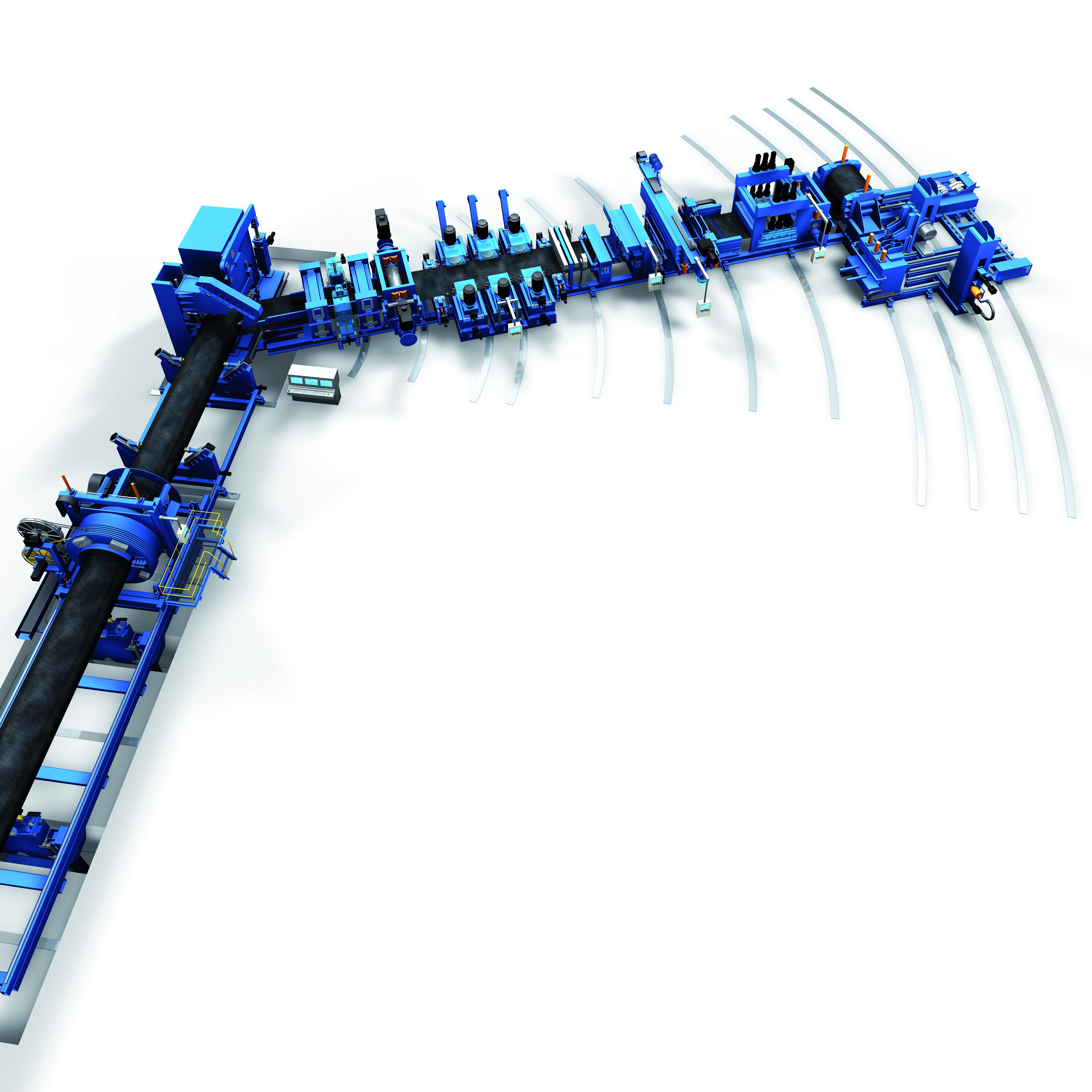 With a production speed of ten meters per minute, the new plant easily outperforms the conventional spiral pipe plants previously used by Group Five Pipe Saudi. "Our customer will be increasing its capacity by up to 400,000 metric tons per year," explains Jochen Früh, Managing Director at Schuler. "We are not only building and supplying the complete plant with all peripheral equipment, but will also fully install it and launch production over the course of the coming year."
