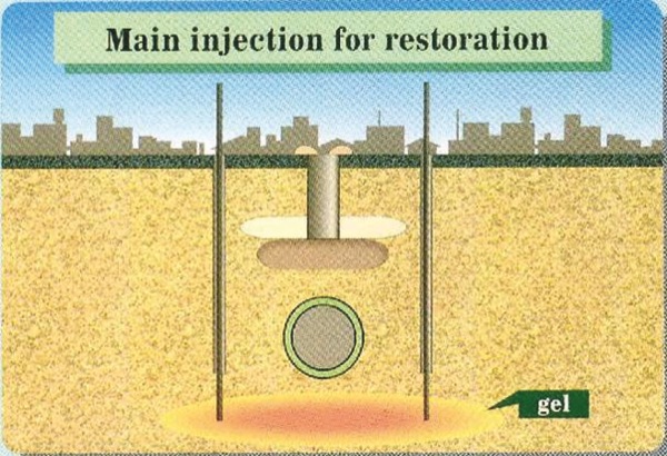 It is necessary to consider upheaval pressure to ensure appropriate planning when determining the injection depth for the restoration constructions. A pulse injection is adopted because ground upheaval can be easily monitored and controlled, making it easier to repair the damaged pipes.
