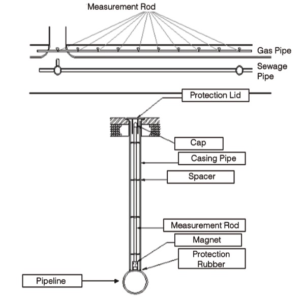 The top position measurement system involves preparing the casing pipe by drilling down to the pipe with pressurised slurry. The sprayed slurry is pumped from a tank on the surface and excavates and liquefies the soil, which is then continuously sucked from the casing pipe. After the hole has been extended to the top of the pipe a measuring rod is inserted into the drilled hole and the magnetised tip is set on top of the pipeline. This ability to establish existing conditions prior to construction works has resulted in improved site execution and management.