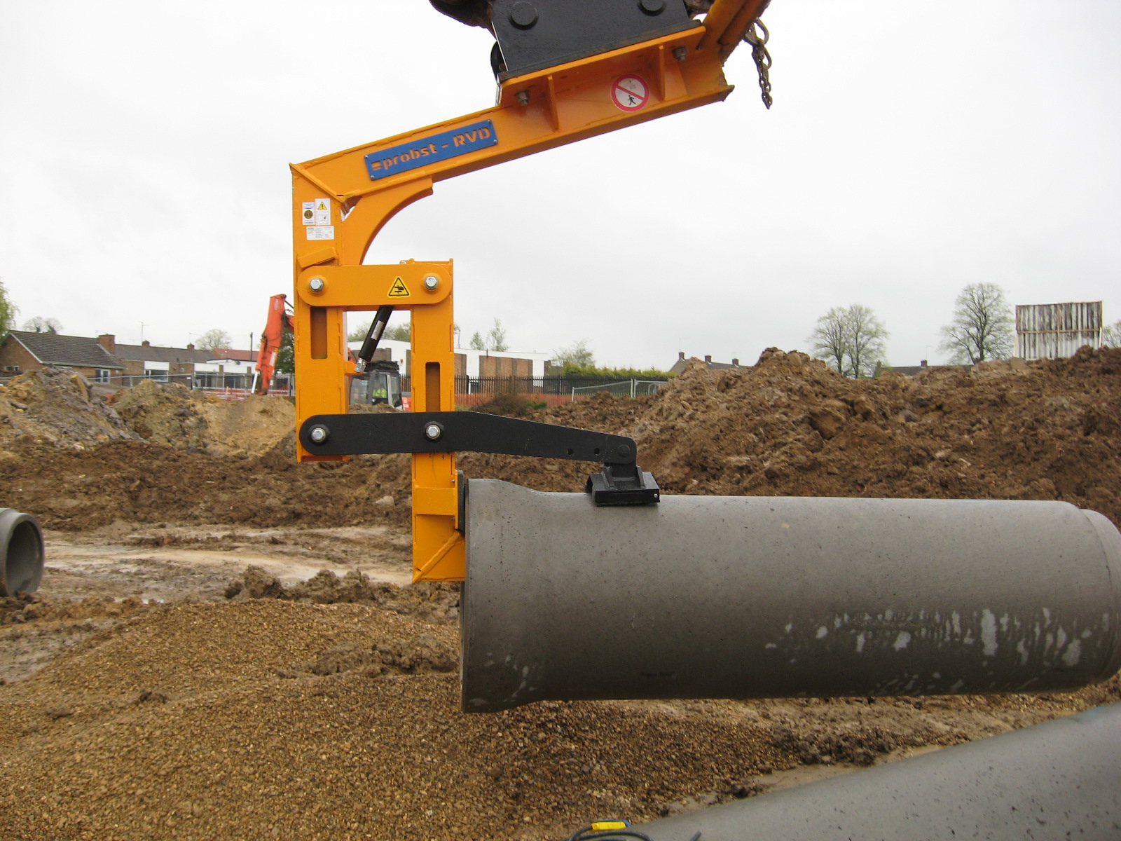 The RVD-4-ECO-F is developed by Probst GmbH, the worldwide market leader of handling and laying systems, headquartered in Germany. The Concrete pipe lifter saves 50% time when lifting concrete pipes compared to previous methods, reduce manual handling and lower the risk of accidents. Not only for pipe lifting but effi ciency can be made when unloading or loading reinforced concrete pipes on tracks at Construction sites. There is no need for using slings or chains.