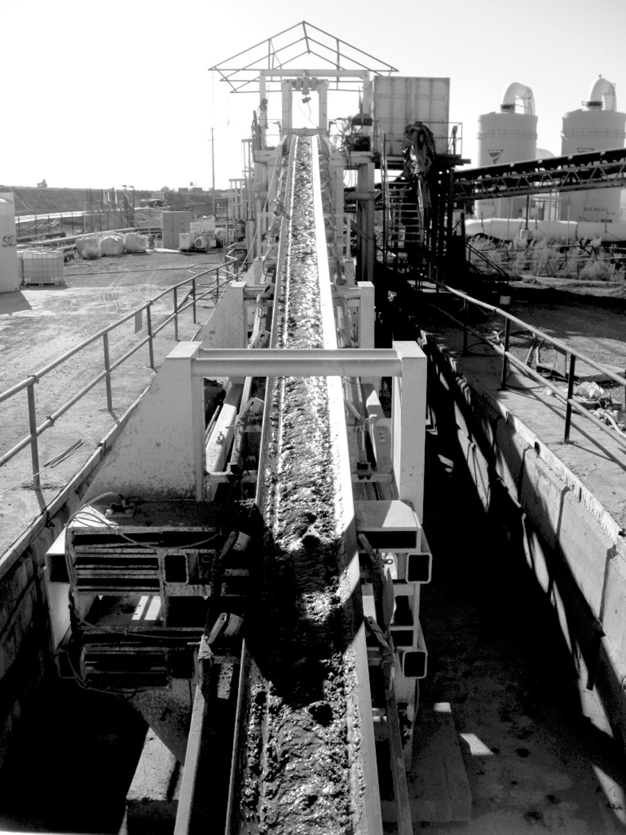 Further design modifications minimize the wear of conveyor belt and prevent stoppage due to sticky material. Primary and secondary bore scrapers clean off very heavy material, while a belt wash box installed on the surface near the main drive effectively removes fine material from the conveyor before it cycles through the belt storage cassette. The wash box consists of water spray in combination with ‘air knives’—pressurized jets of air that remove material from the belt without direct contact. The use of air knives eliminates the need for consumable components that come in direct contact with the belt and must be replaced.