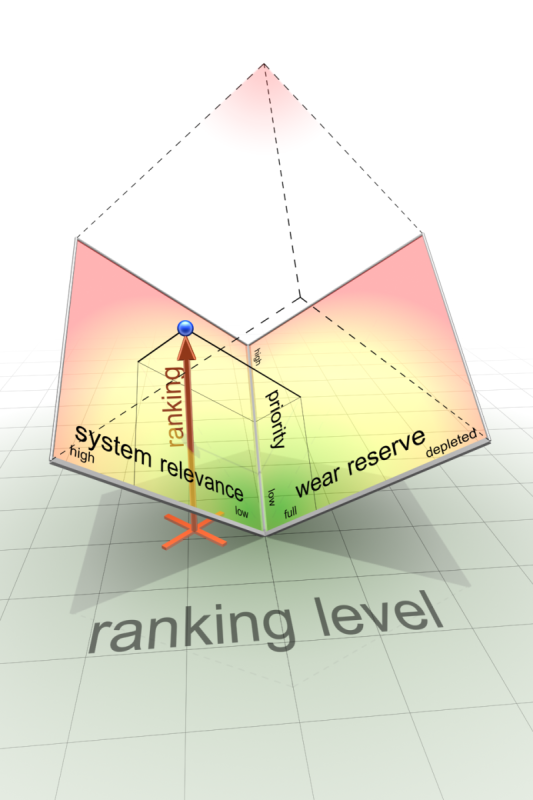 The different ranking criteria can be applied in parallel like in figure 3, adding a weighting component to the ranking, consecutively or as a mixture of both. In figure 3 the process is visualized for the three criteria priority, wear reserve and system relevance which are applied in parallel and change the ranking of the rehabilitation candidates. With this flexibility the ranking can be adjusted to any ranking approach by the network operators or enable them to extend their way of ranking.