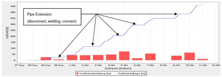 - One-step jacking method, i.e. the product pipeline is pushed into the ground in one step, in contrast to all common methods, which have so far been applied