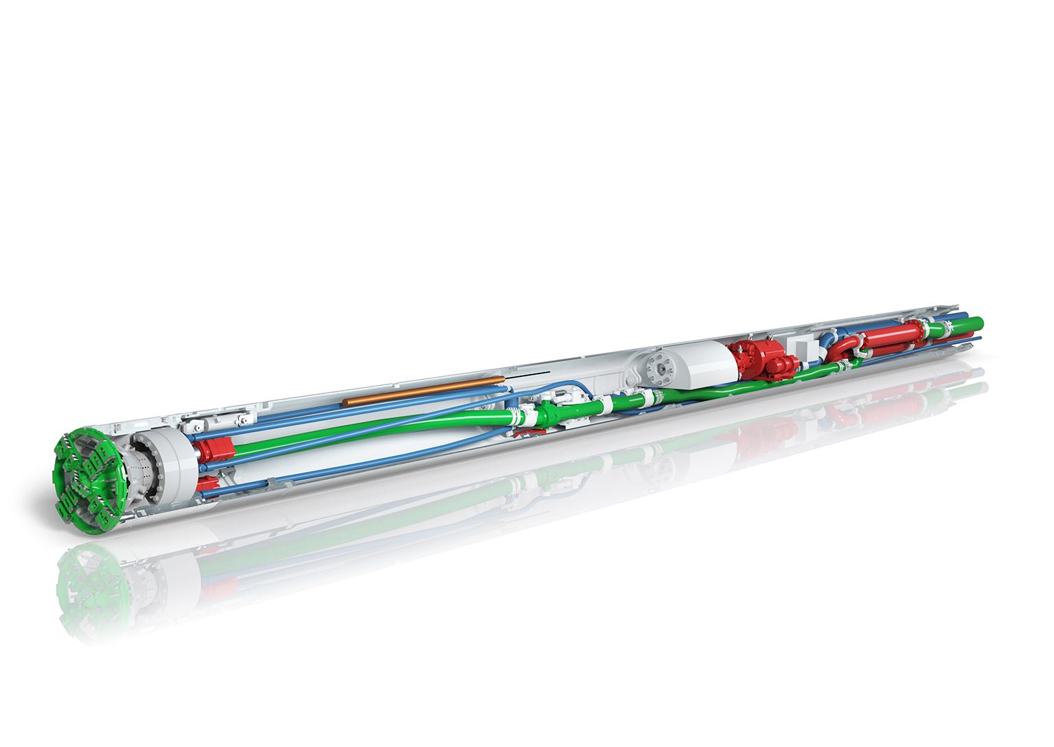 The heart of the system is the fully remote controlled tunnel boring machine AVNS350XB, which has an excavation diameter of 505 millimeters and is designed for drive lengths of more than 1,000 meters. The machine can keep to the planned alignment with high precision and thus cross safely under existing infrastructure such as pipelines, roads, railways or smaller bodies of water. Individual boreholes can be placed a small distance apart of only 1 – 2 m, so several lines can be installed in parallel.