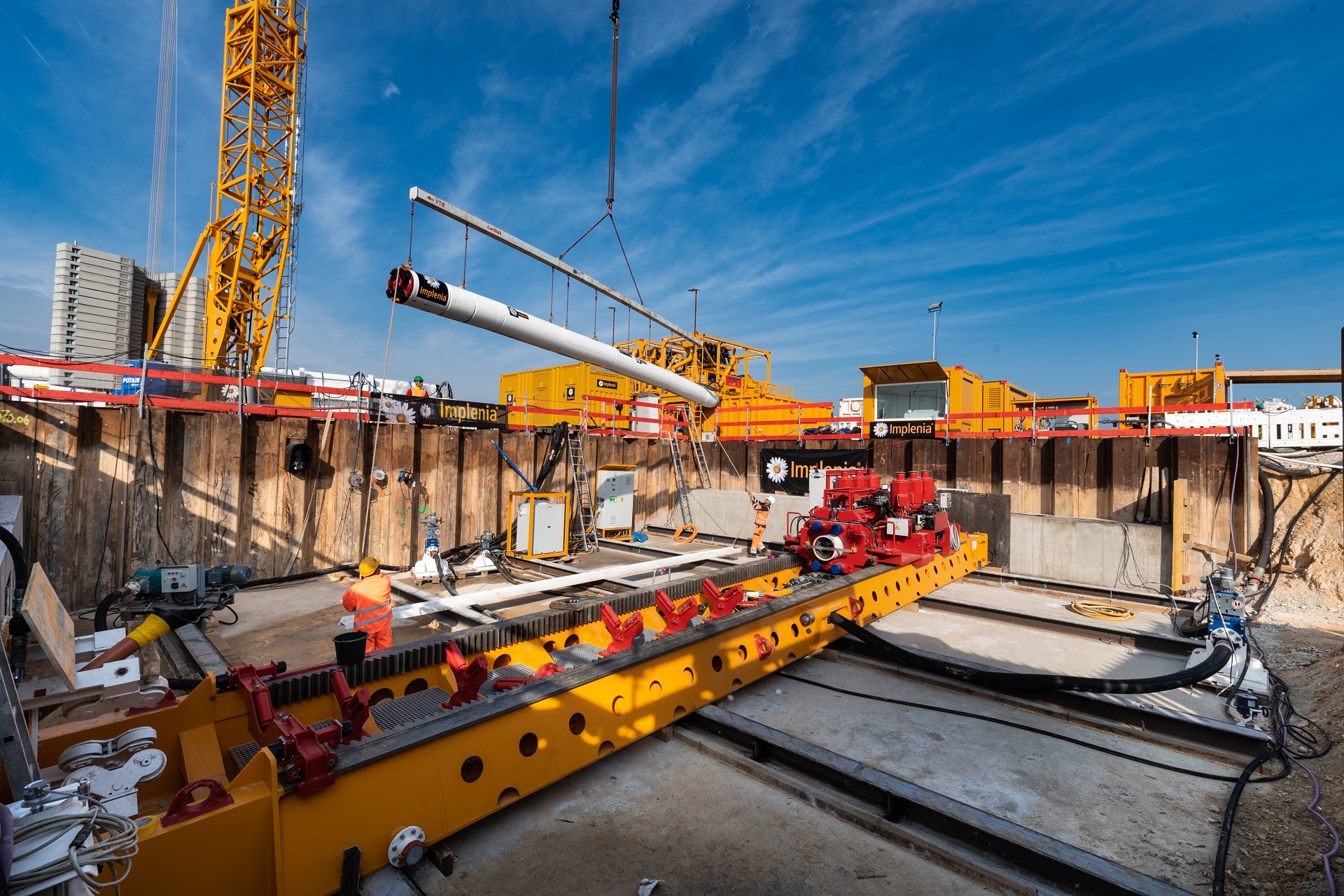 The method innovation involved the development of new, extended jacking pipes that allow a much more continuous advance. Herrenknecht developed an appropriate push and pull unit with a 10 meter stroke and a push and pull force of 350 tonnes specifically for these jacking pipes. The technology is based on a rack and pinion guide, powered by electric motors. As a result, the innovative concept ensures higher installation performance and greater acceptance thanks to lower noise emissions.