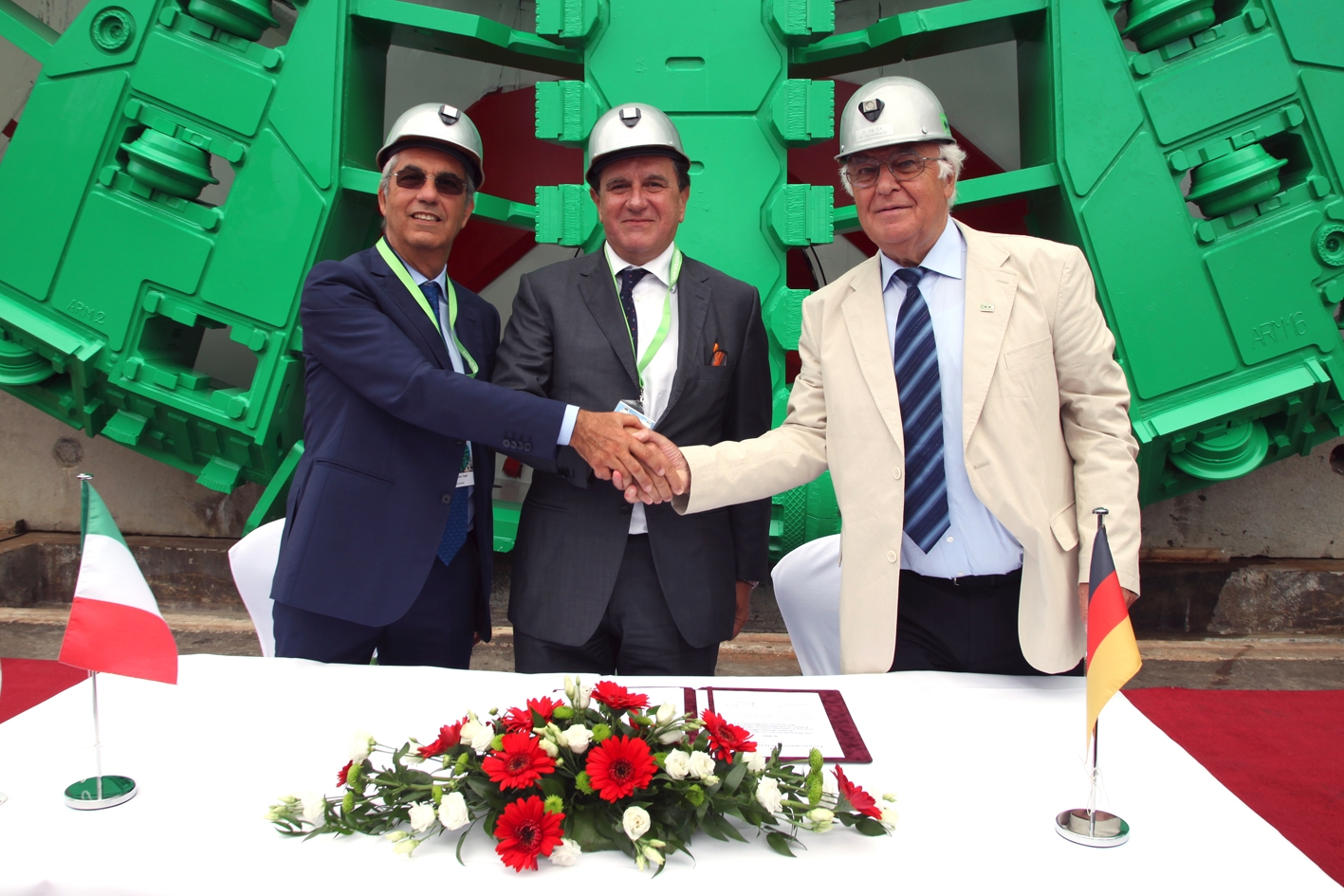 On completion of the record breaker a comprehensive technical acceptance took place on August 29, 2016. The highlight was the turning of the massive cutting wheel (410 tonnes), which, equipped accordingly, will burrow through the heterogeneous subsoil. The TBM customer, construction company Pavimental S.p.A., representatives of client Autostrade per l'italia S.p.A. as well engineers and the Board of Herrenknecht AG inspected the machine thoroughly and with some pride.