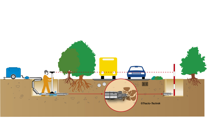 The new GRUNDOMAT N soil displacement hammer generation is a milestone in the 40 year success story of GRUNDOMAT. The new generation now improves the propulsion and directional stability for an even greater target precise installation. The new GRUNDOMAT N sizes will be available in diameters 45 – 55 – 65 – 75 – 85 – 95 – 110 – 130 – 145 – 180mm.