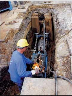 After the working pits have been prepared, the pipe replacement section must be separated from the network and the service pipes or laterals and any possibly existing pipe tees in a working pit. They have to be cut back sufficiently to avoid damage during the pipe bursting process.