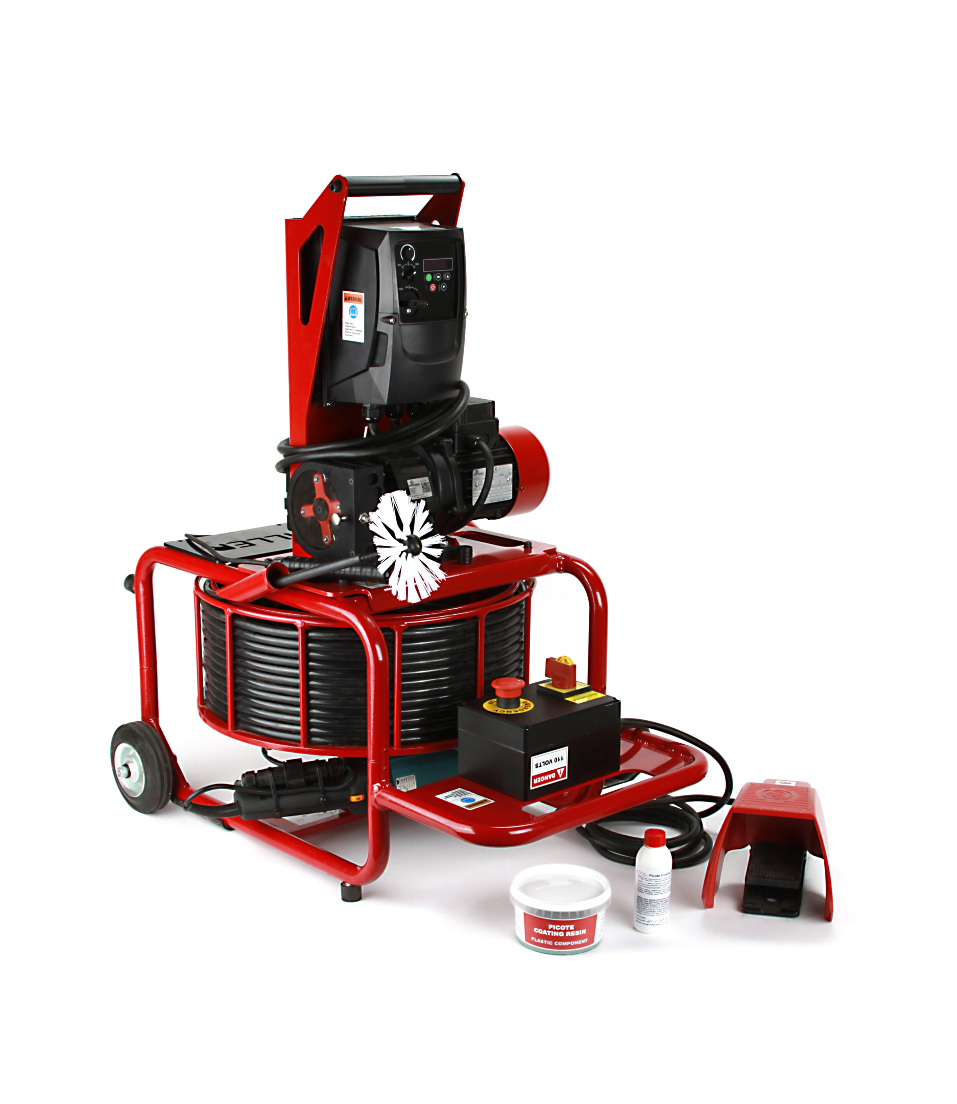 A compact system that weighs only about 33 pounds, the Picote Pipe Coating System is easily used for projects in tight space. Applications are approximately 1/16 inch per pass, requiring just two to four coats to build the desired thickness.  The urethane coating dries to the touch within hours, reaching full hardness in seven days. Pipes can be reconnected in a day. Even after reaching full hardness after seven days, the coating remains flexible enough to withstand shock and bending, which greatly prolongs the service life of the pipe up to 50 years. Use of the Picote Pipe Coating System requires a CCTV camera and Mini Miller to power the system. Brushes, hoses and shaft come in a variety of styles and sizes for a customized package.