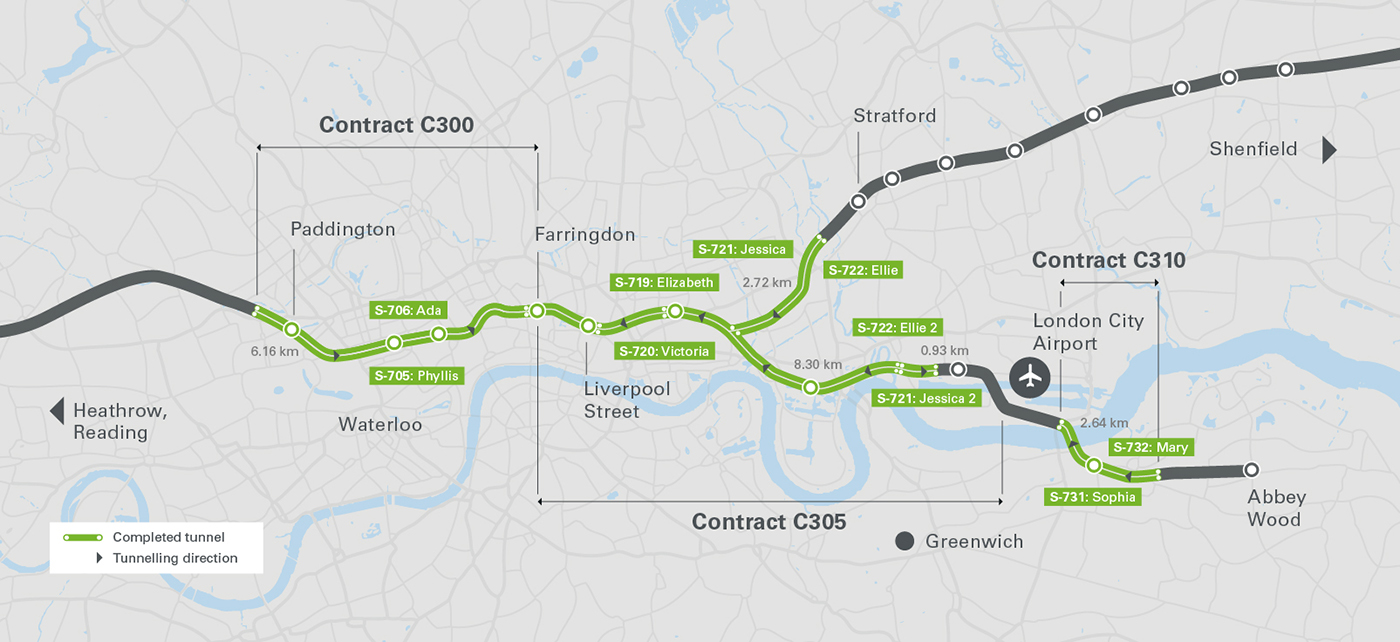 - S-719: EPB Elizabeth - Eastern Tunnels; Y Limmo to Farringdon east - Dragados/SISK JV