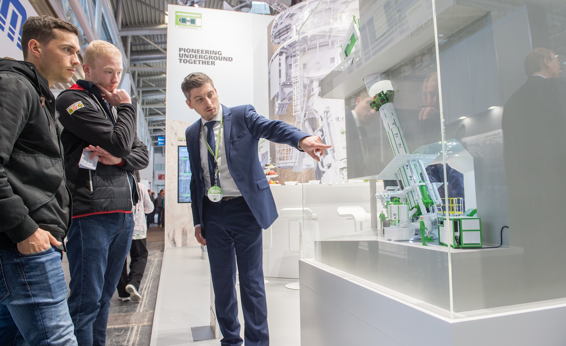The Group Brands booth opposite presented the Herrenknecht Group's entire portfolio of upstream and downstream equipment and services provided by highly specialized subsidiaries. Visitors from the mining sector discussed the latest excavation technologies in that field with their colleagues at the Mining booth.