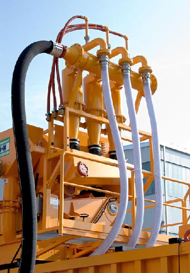 In the past, it has been proven time and time again that separation is a vital and sensitive integrative module in the use of tunnel boring machines with hydraulic slurry systems. The separation plant separates the slurry suspension components – solids and liquid – in order to re-provide the slurry circuit with the supporting medium and to make the separated solids disposable. Hydraulic transportation is, however, limited by the concentration of the solids and by grain size. Only an efficient separation can guarantee high performance rates. Insufficient separation obligatorily leads to difficulties regarding the removal of the material from the tunnel face to the separation plant above ground, ensuing downtimes and reduced output.