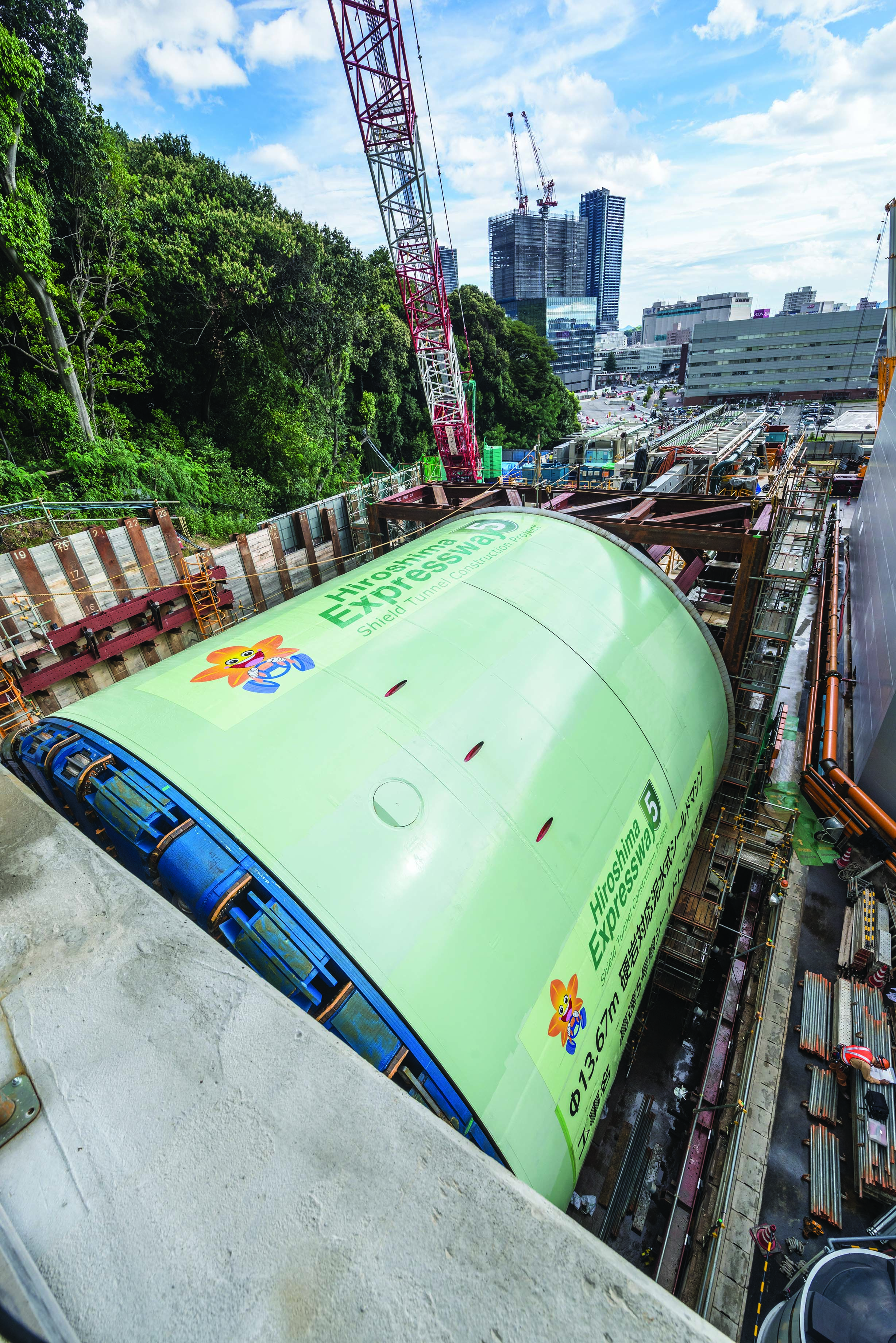 Due to the project location there were also restrictions on delivering the TBM—in order to meet controlled transportation limits within the city, the TBM had to be divided into small transportable weights and sizes, then assembled in a small jobsite measuring just 30 m (100 ft) wide x 60 m (200 ft) long. The 2,400 metric ton (2,650 US ton) machine will bore 1.4 km (0.9 mi) of the 1.8 km (1.1 mi) long tunnel that, once completed, will significantly improve traffic conditions in Hiroshima.