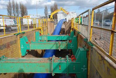 Contractor Morgan Est is performing the installation, which began in November 2008 and is due to be completed in September 2009. Straight pipe sections are jointed using a 1m fusion welding machine that is unique in the UK. Welded pipe strings of 540m and of 570m have already been pulled into place and a second 540m length is in progress.