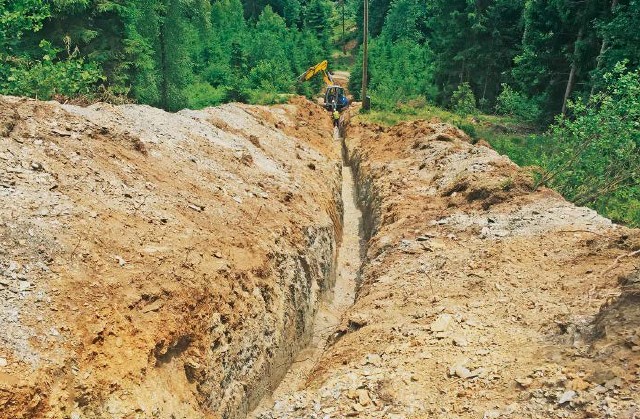 The starting signal was given by the equipment operator from the Porr-Seiwald consortium commissioned for the work, who was taking up the challenge with the “spider” and an additional winch securing device. So a trench was able to be excavated for the pipes in the conventional way, without the need for cost-intensive boring into the rock. The pipes were also transported with the walking excavator. “They used very experienced operators who work with excavators and can handle these pipe bundles”, says Walter Brieger approvingly. “It’s hard work, managing the transport in such terrain”.
