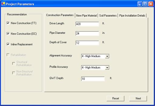 U-COMET is a fully computerized algorithm for the evaluation of competing construction methods capable of installing, repairing, or replacing buried pipes and utilities. This approach emphasizes simplicity and practicality, while limiting the input data to that which is readily available to municipal and utility engineers via the utilization of an extensive built-in database. A built-in wizard as well as an extensive database is used to assist users who have limited experience with trenchless construction methods.
